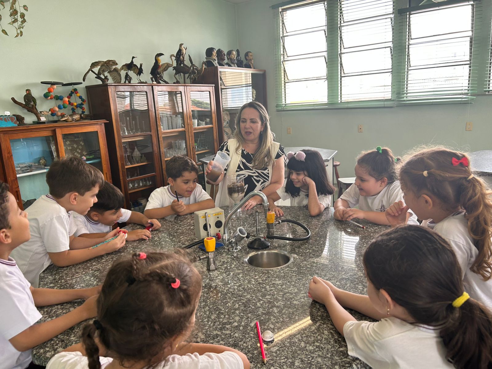 Em comemoração ao Dia da Água, os alunos do 1º ano A e B aprenderam sobre o processo de filtragem da água por meio de uma experiência prática no laboratório de ciências.