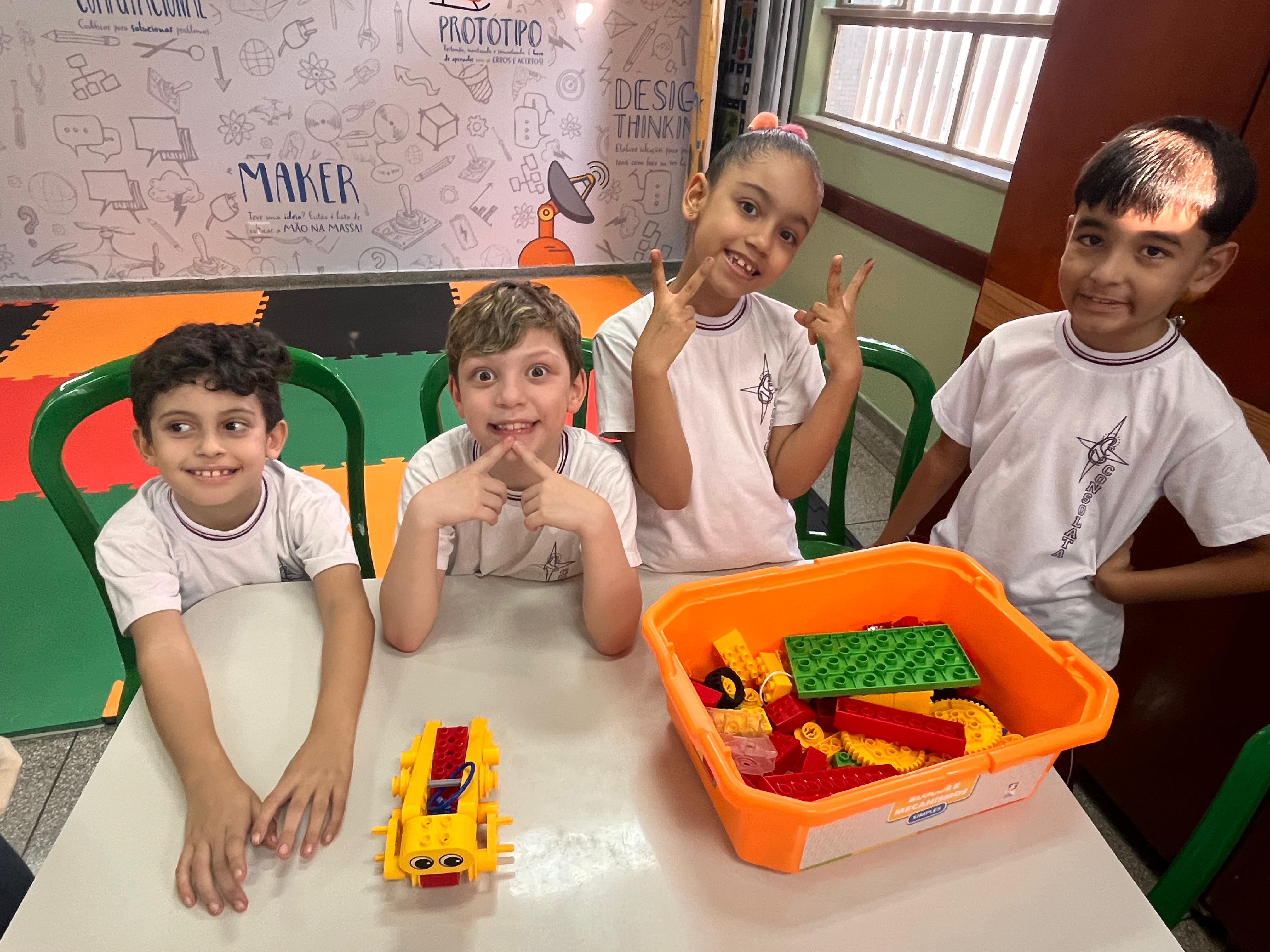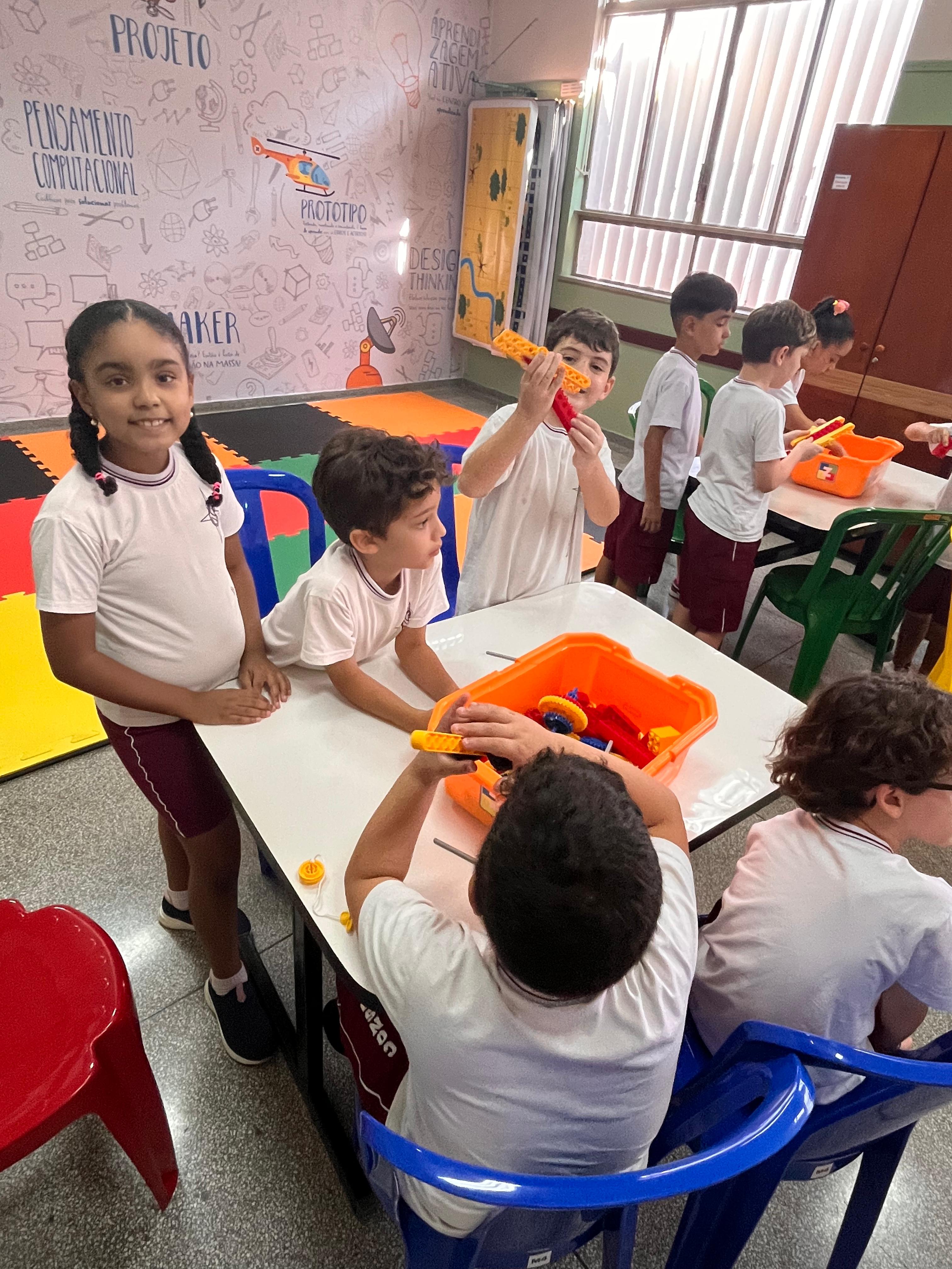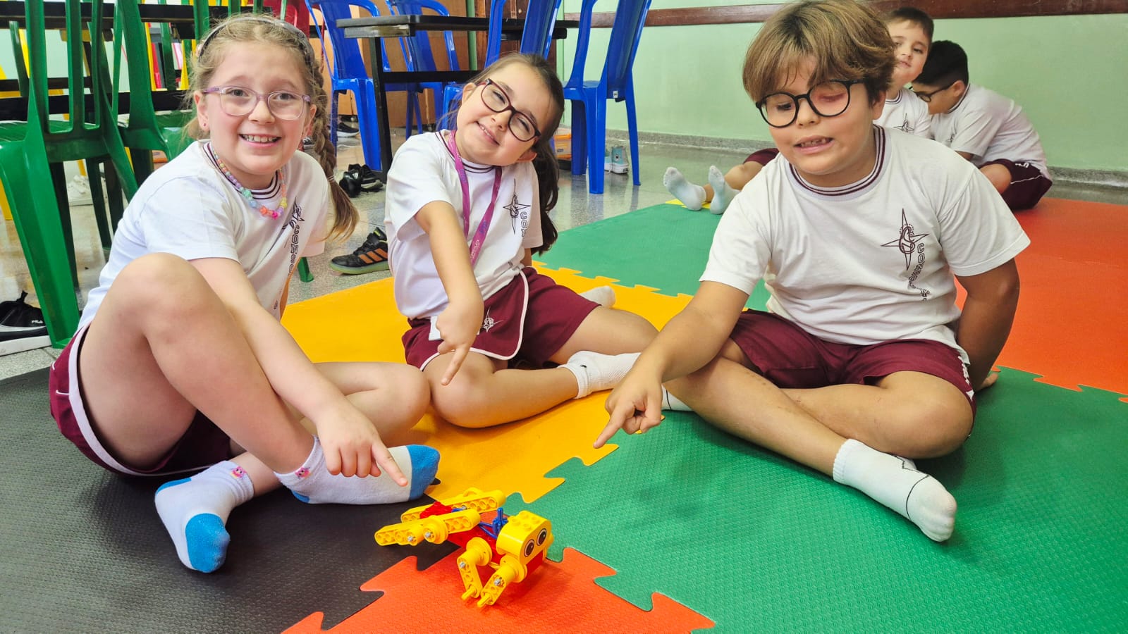 Cada participante contribuiu com ideias, aplicando seus conhecimentos e desenvolvendo novas habilidades ao longo do processo, tornando tudo leve e envolvente. Entre tentativas, ajustes e descobertas, o gafanhoto foi ganhando forma, simbolizando não apenas o resultado final, mas também a competência coletiva e a colaboração de todos. No fim, o que ficou não foi só a construção em si, mas a conexão criada entre os alunos, mostrando que é possível aprender, criar e evoluir juntos.