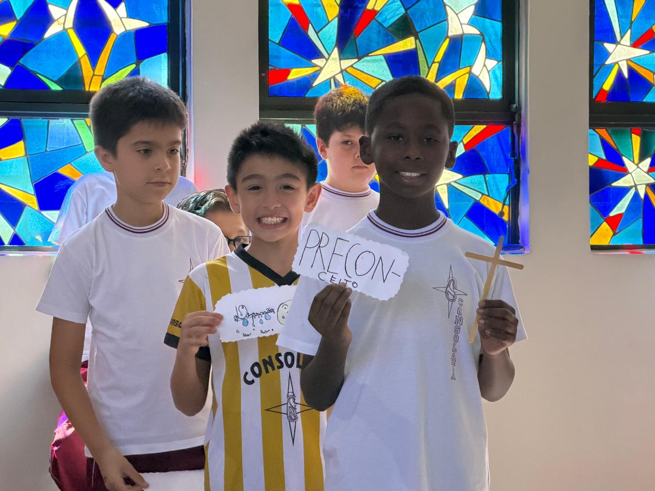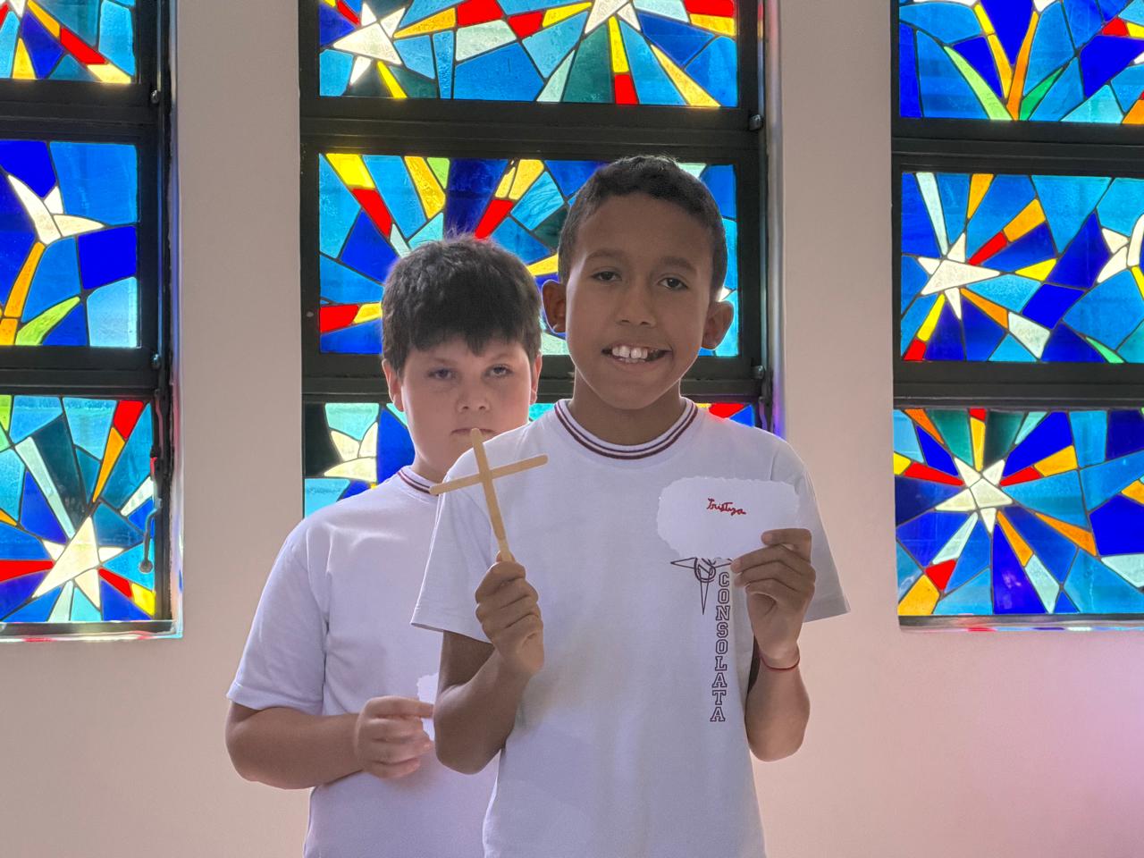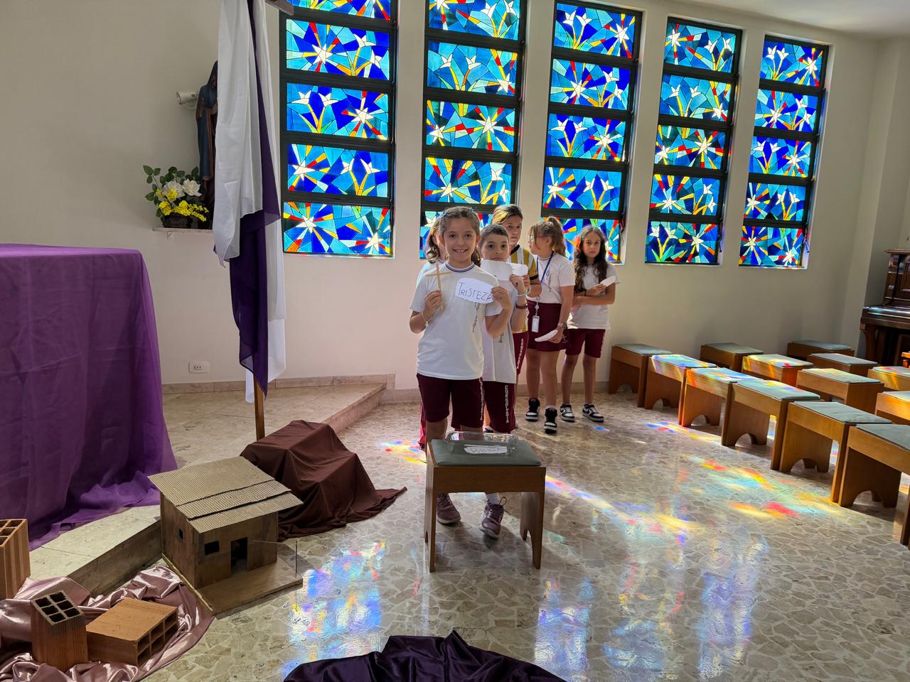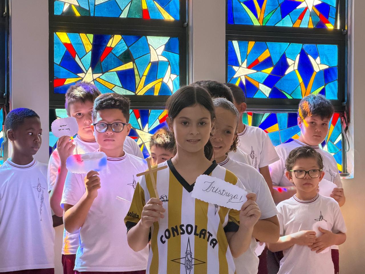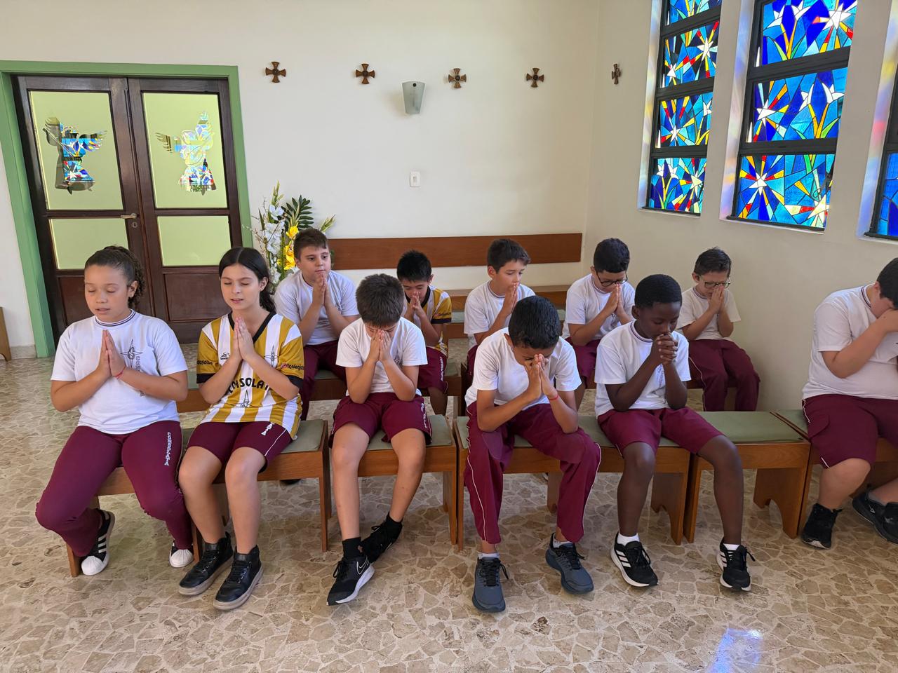 Os alunos do 4º ano participaram de uma assembleia na capela Consolata com o tema renovação, em razão da ressurreição de Jesus.