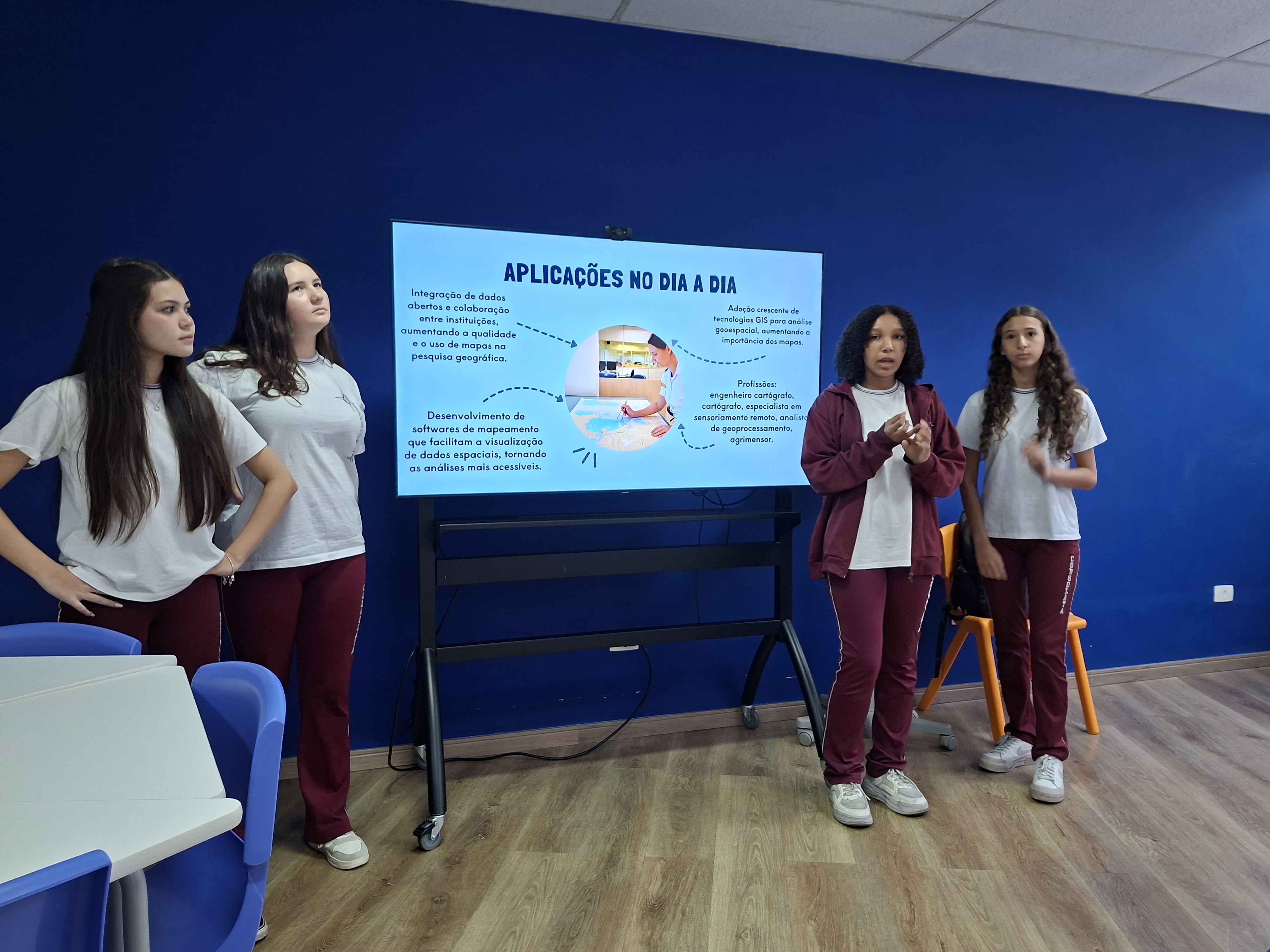 A atividade foi orientada pelo professor João, de Geografia, estimulando a investigação, o pensamento crítico e a compreensão de como os mapas fazem parte do nosso cotidiano.
