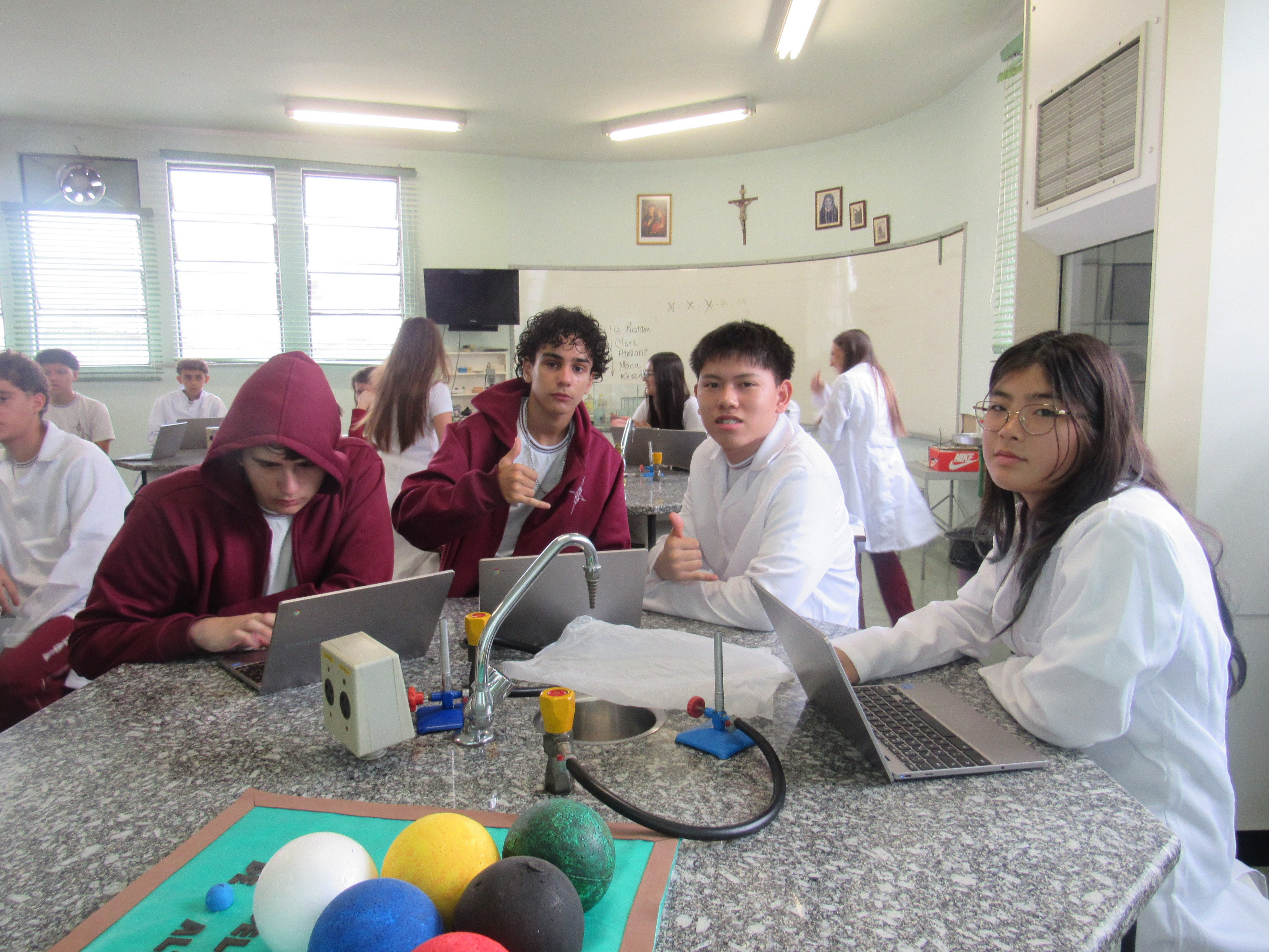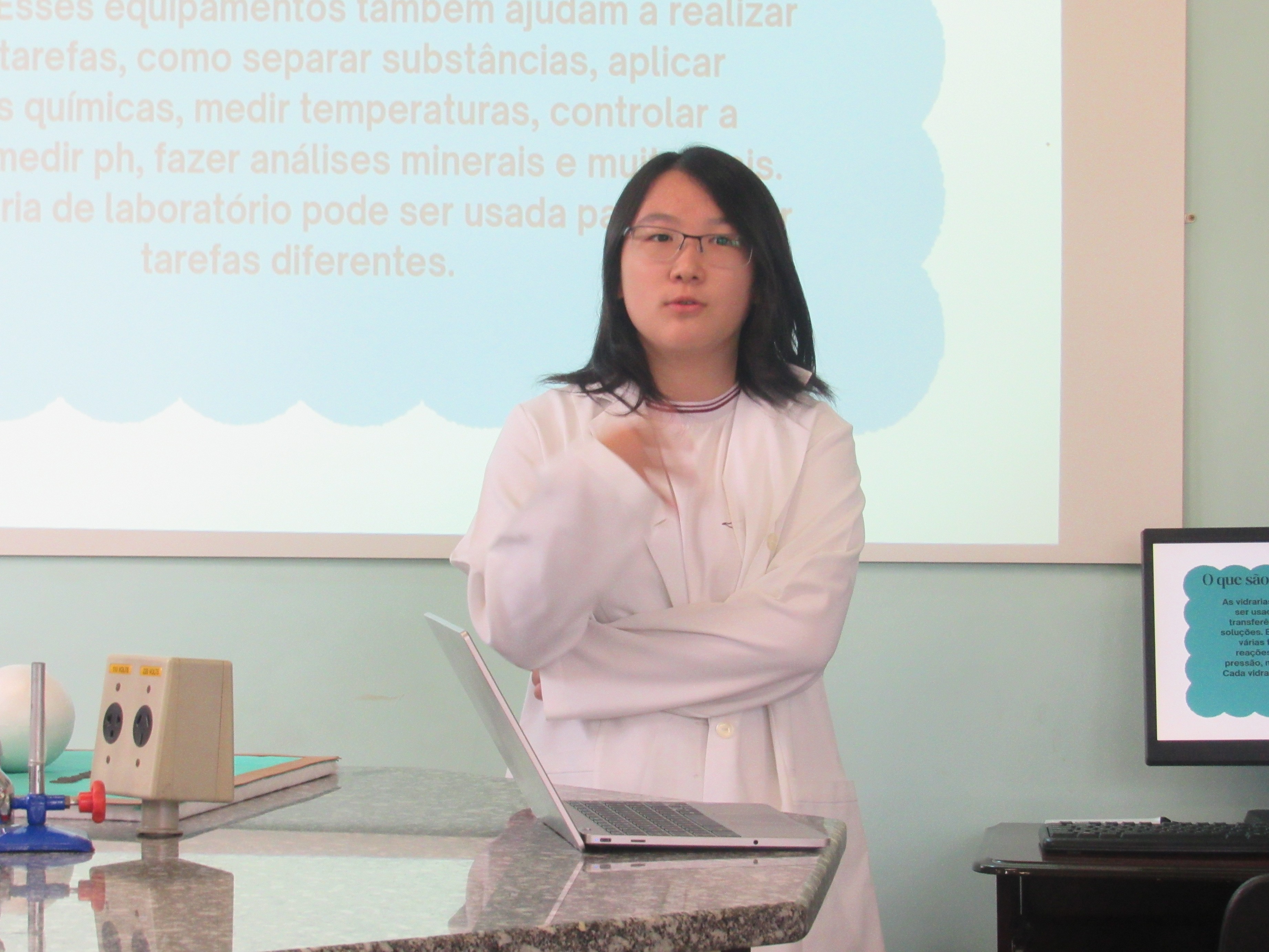 Os alunos das 1ªs séries do Ensino Médio participaram com excelência da apresentação do trabalho sobre as vidrarias do Laboratório de Multiciências, tendo como foco principal a segurança e a correta utilização desses materiais. A atividade contou ainda com o apoio da lousa digital do laboratório, enriquecendo a aprendizagem e tornando o momento mais dinâmico e interativo.