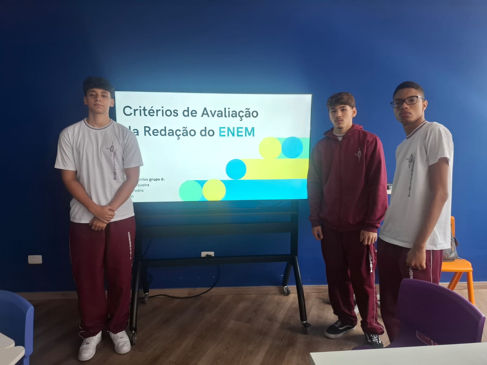 Os alunos da 2ª série A do Ensino Médio vivenciaram uma experiência diferente e muito significativa: eles apresentaram seminários sobre os critérios avaliativos da redação do ENEM e, na sequência, colocaram esse conhecimento em prática ao avaliar redações reais de candidatos de anos anteriores.