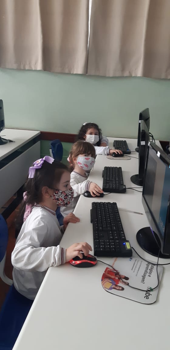 Os alunos do Infantil ficaram felizes em ir para Aula de Informática.