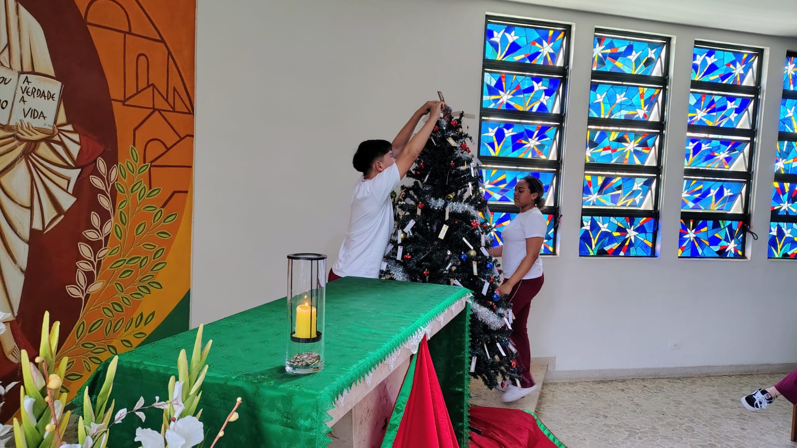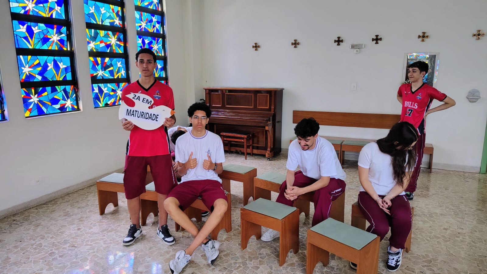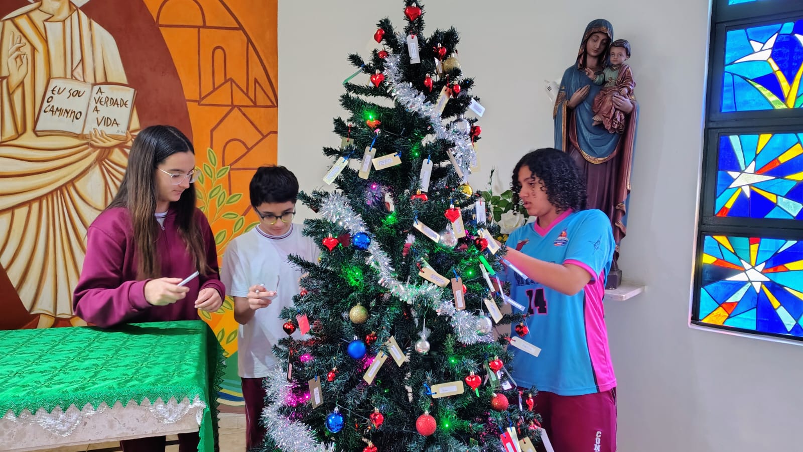 Principalmente quando temos vários motivos que nos faz parar e refletir em tudo que acontece na nossa vida. Neste final de semestre, todas as turmas do Ensino Fundamental 2 e Ensino Médio, vivenciaram um momento de ação de graças, agradecendo a Deus por tudo que aconteceu durante o ano letivo. Uma celebração marcada por simbolismos e memórias, a começar pelas virtudes escolhidas no início do ano e vivenciadas no seu decorrer, os acontecimentos que os estudantes levarão para vida e para terminar foi lembrado o significado dos desejos de Natal e a importância de prepararmos bem o nosso coração para receber o menino Jesus. De graça recebemos para sempre agradecer a Deus pelas suas maravilhas. Que tenhamos um santo Natal e digamos, obrigado Senhor.