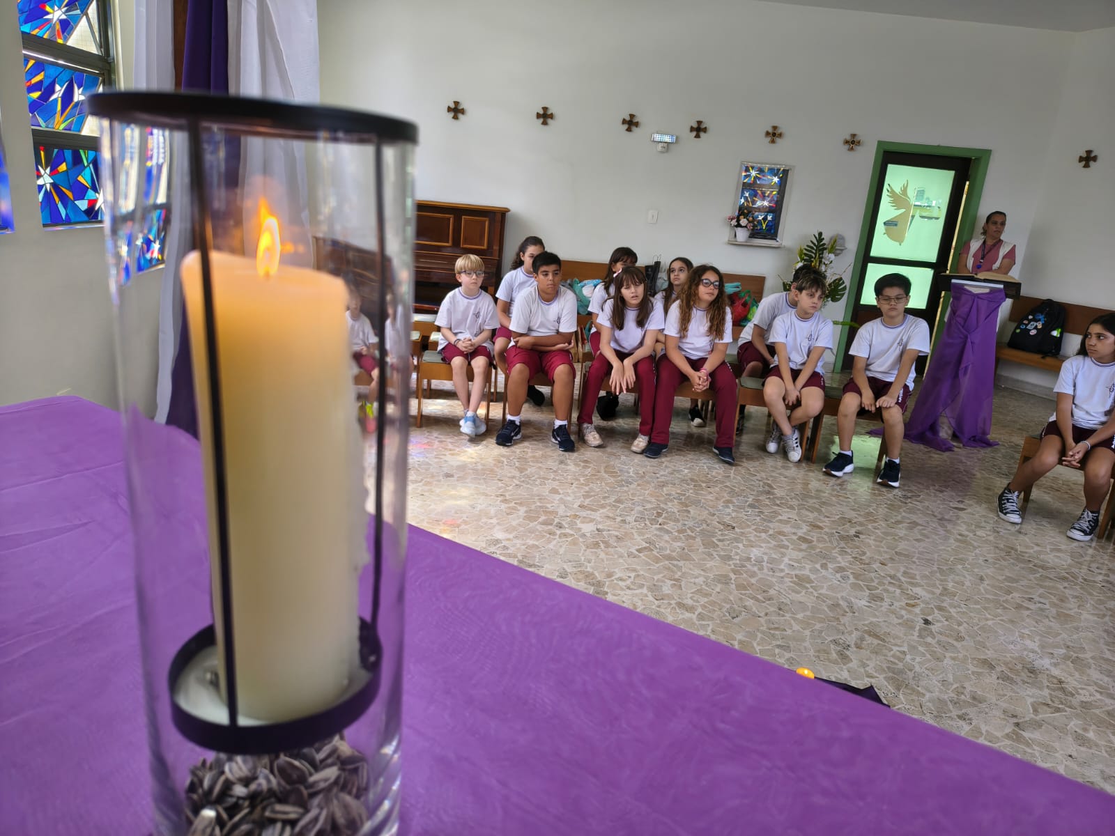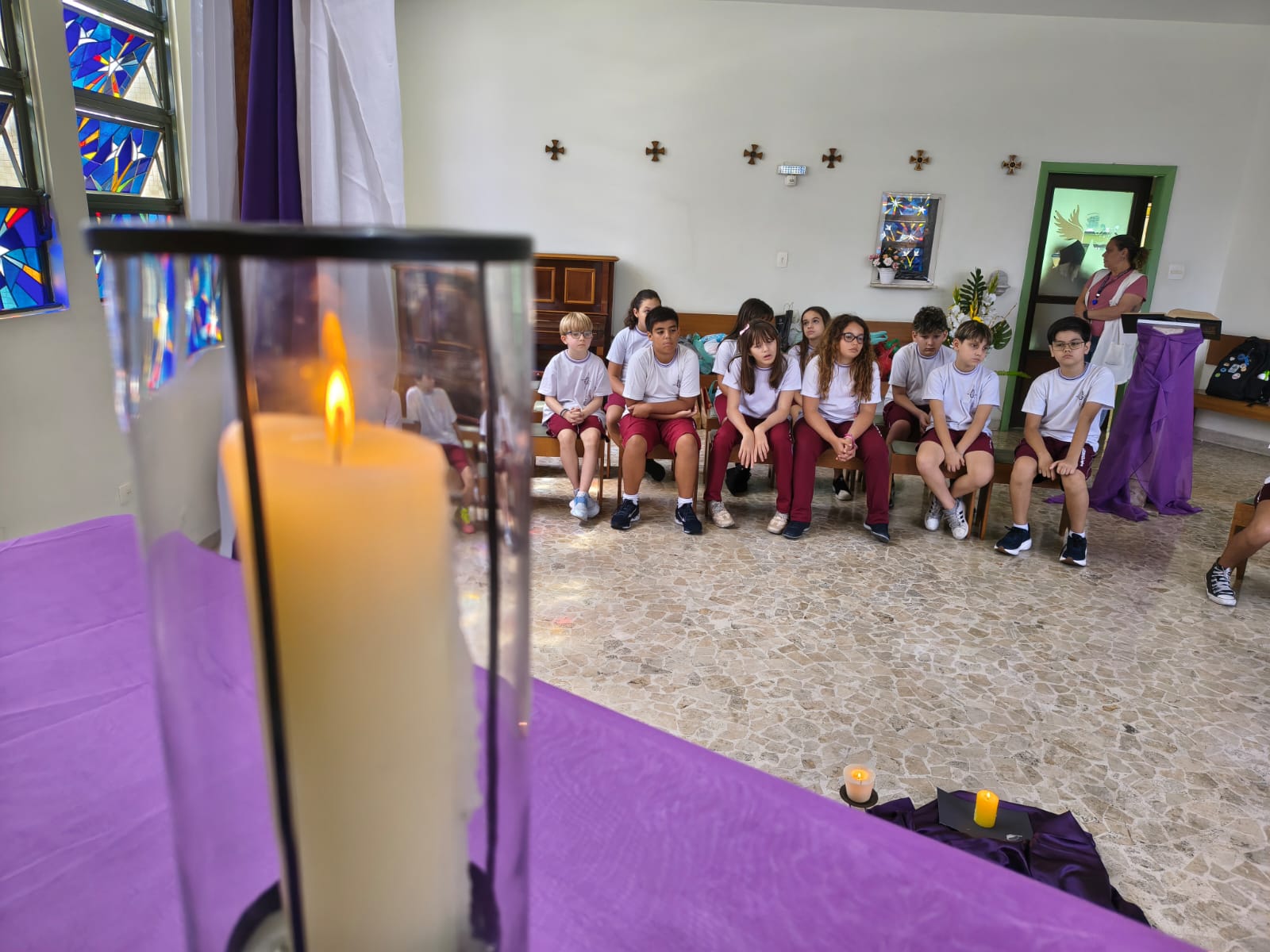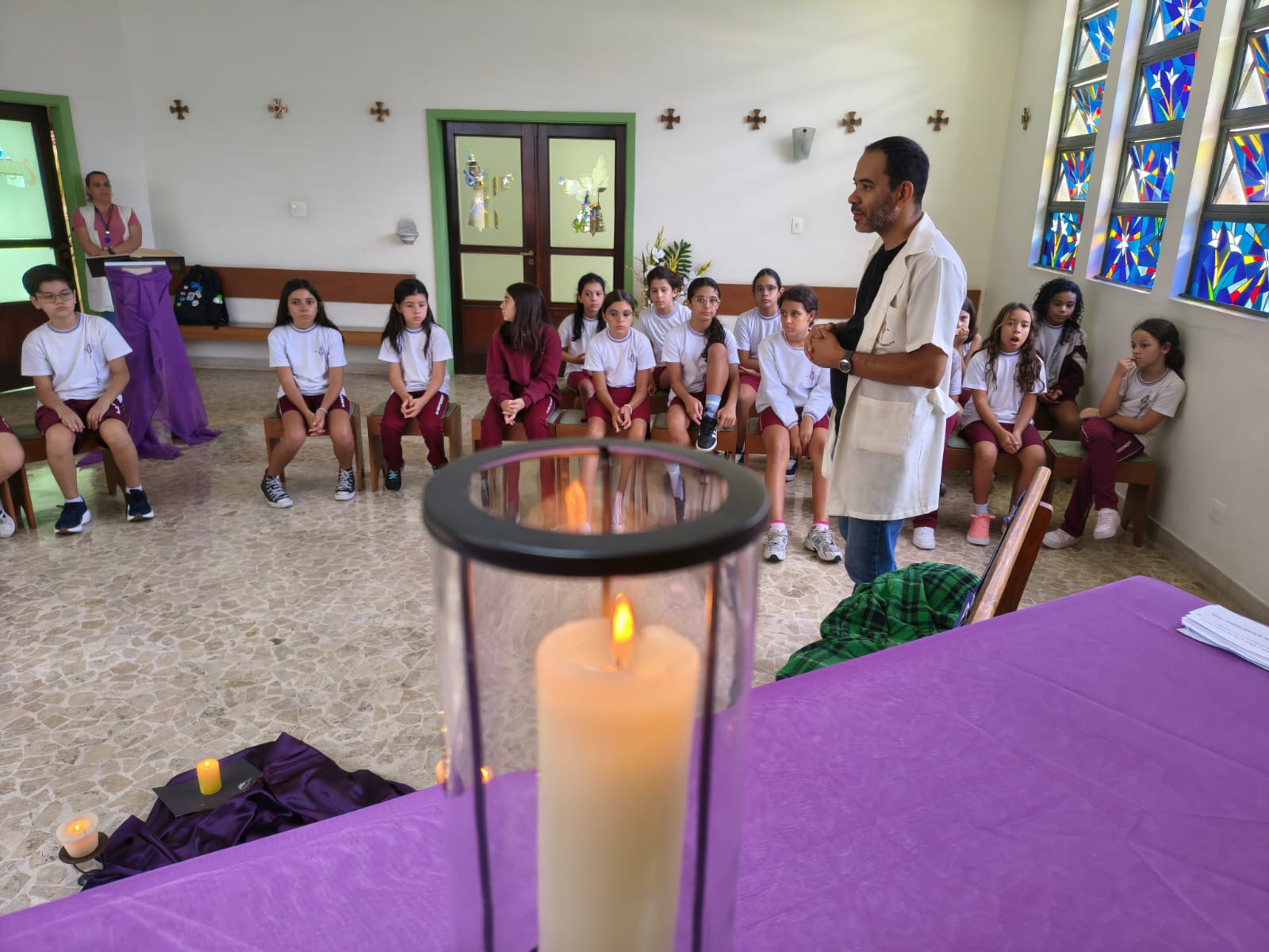 Reunidos com seus colegas, os estudantes experimentaram a beleza de rezar juntos, de escutar e de se colocar diante de Deus com simplicidade e verdade. Assim, vão aprendendo que a fé não se vive sozinha, mas se constrói na convivência, no cuidado com o outro e nas pequenas atitudes do dia a dia, tornando a escola um espaço onde a vida é acolhida, cuidada e transformada.