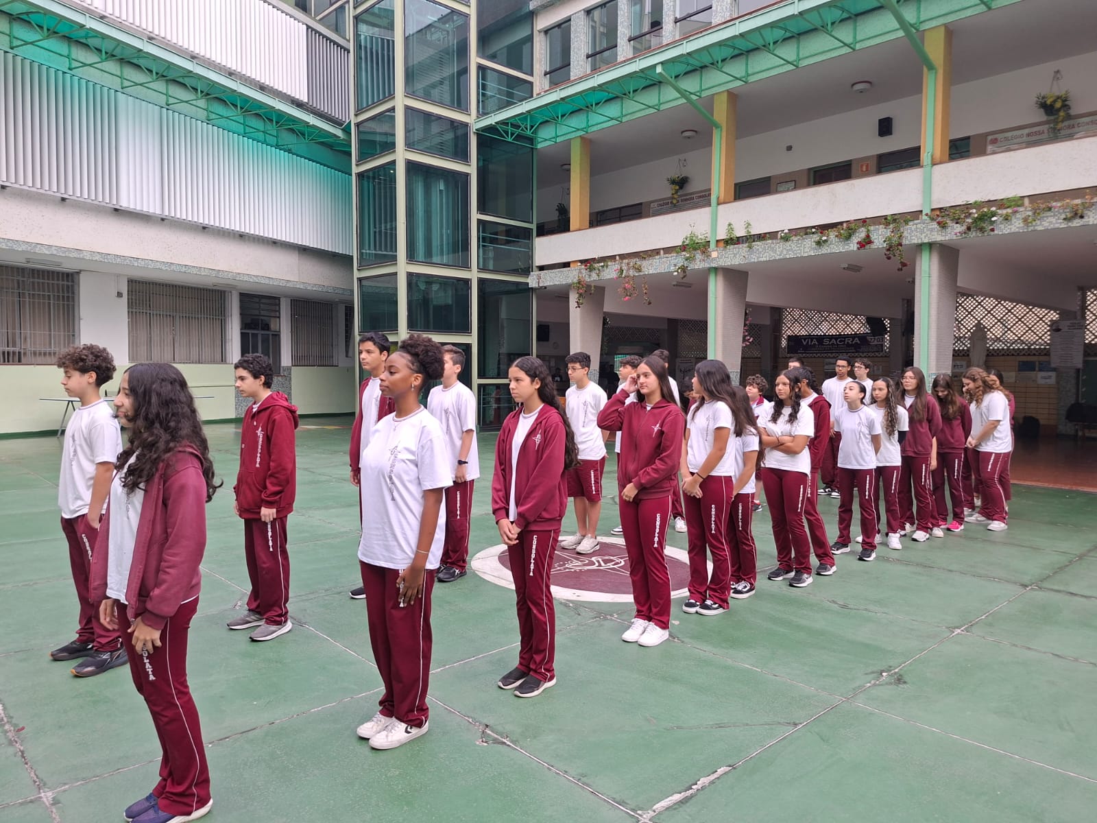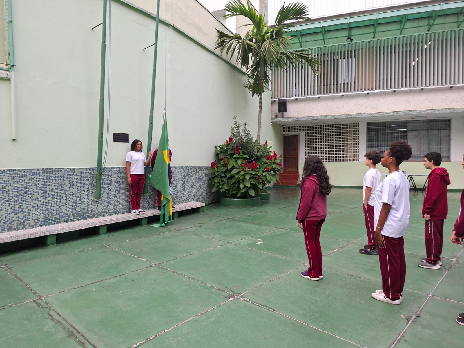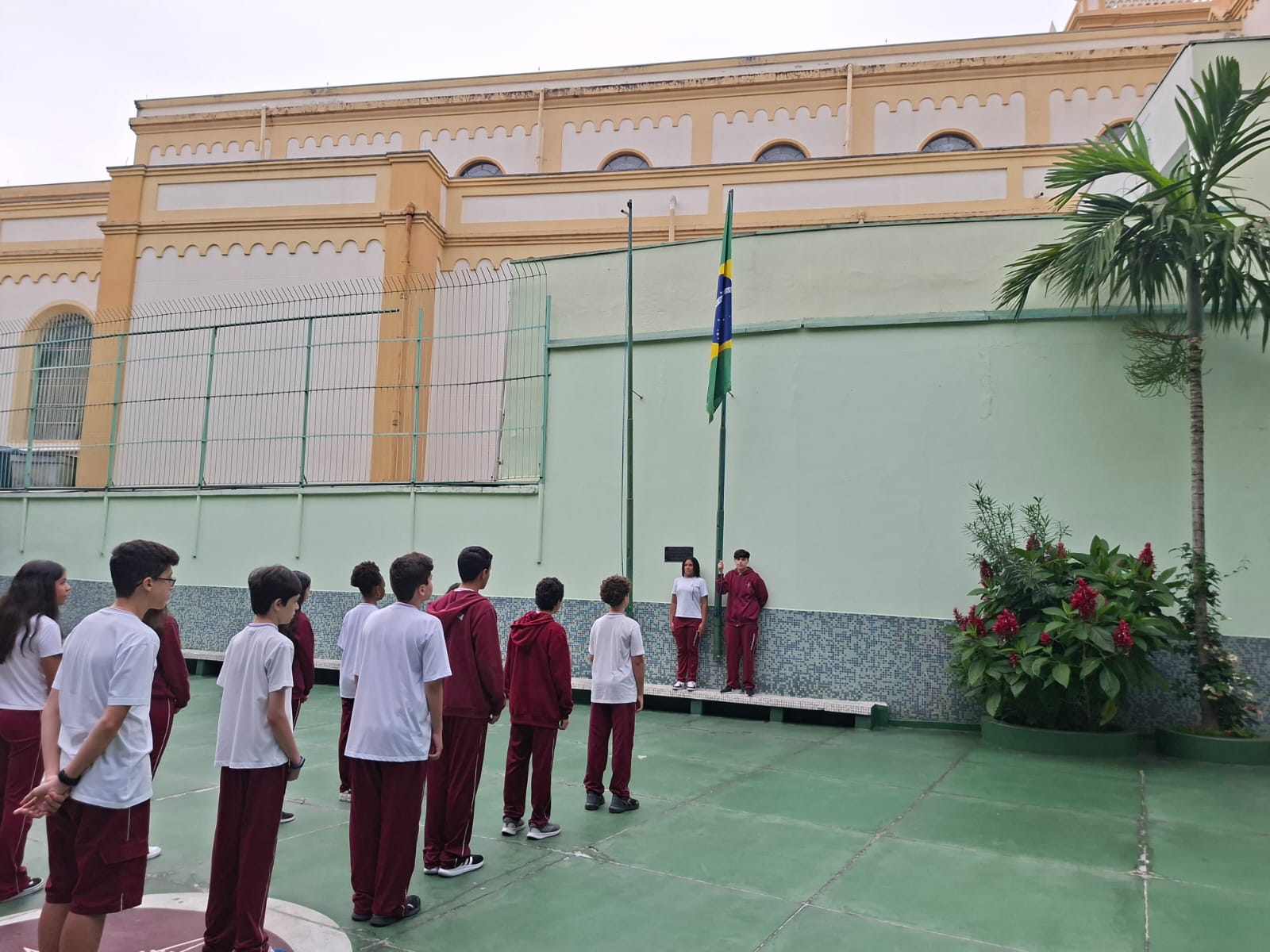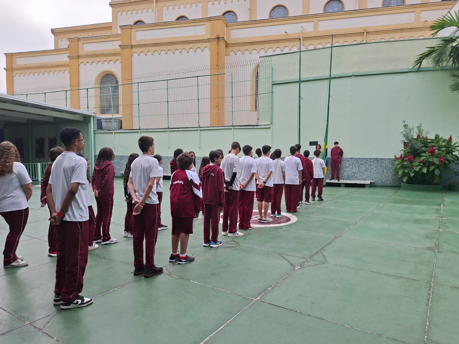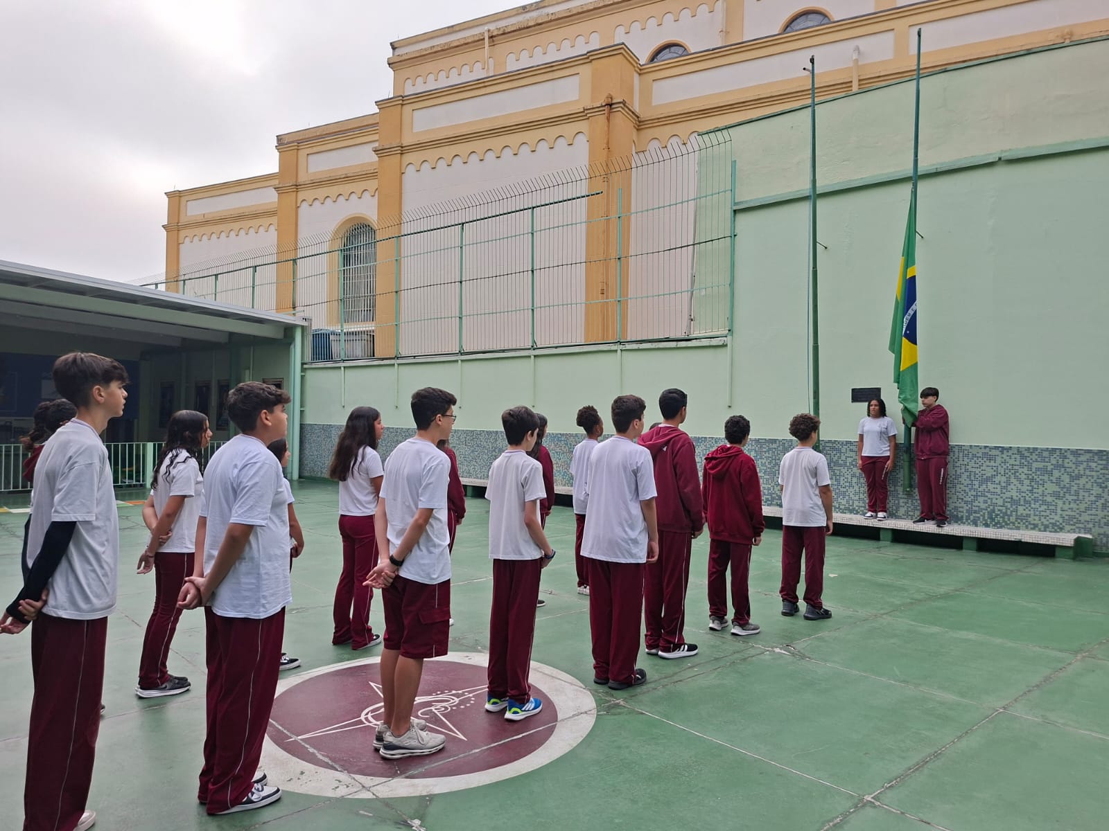 Com dedicação e responsabilidade, os alunos conduziram este momento com seriedade, demonstrando consciência sobre a importância dos símbolos nacionais, do respeito à pátria e dos valores que nos unem enquanto sociedade. Foi um instante de aprendizado que vai além da sala de aula, fortalecendo o senso de pertencimento, ética e convivência.