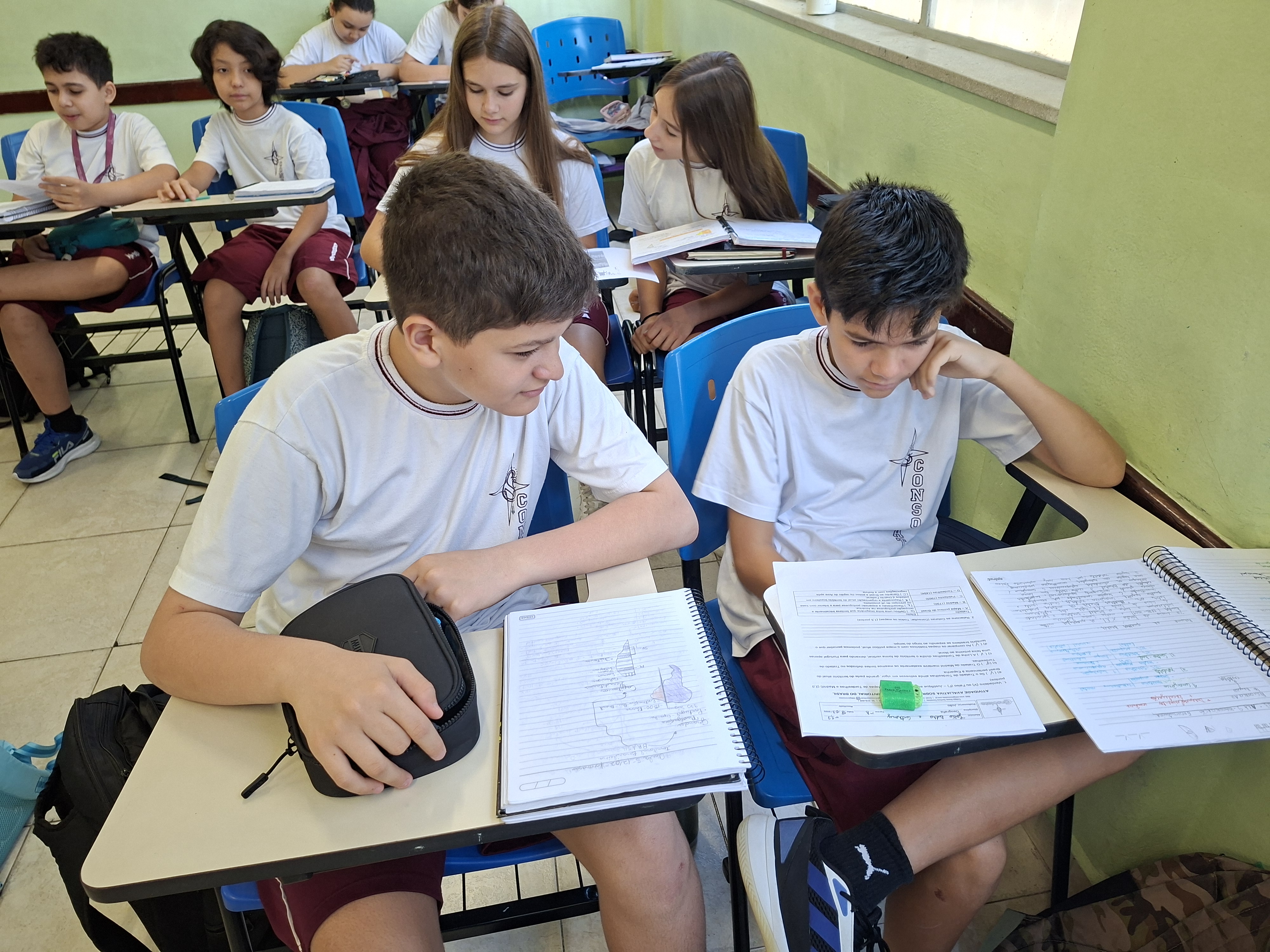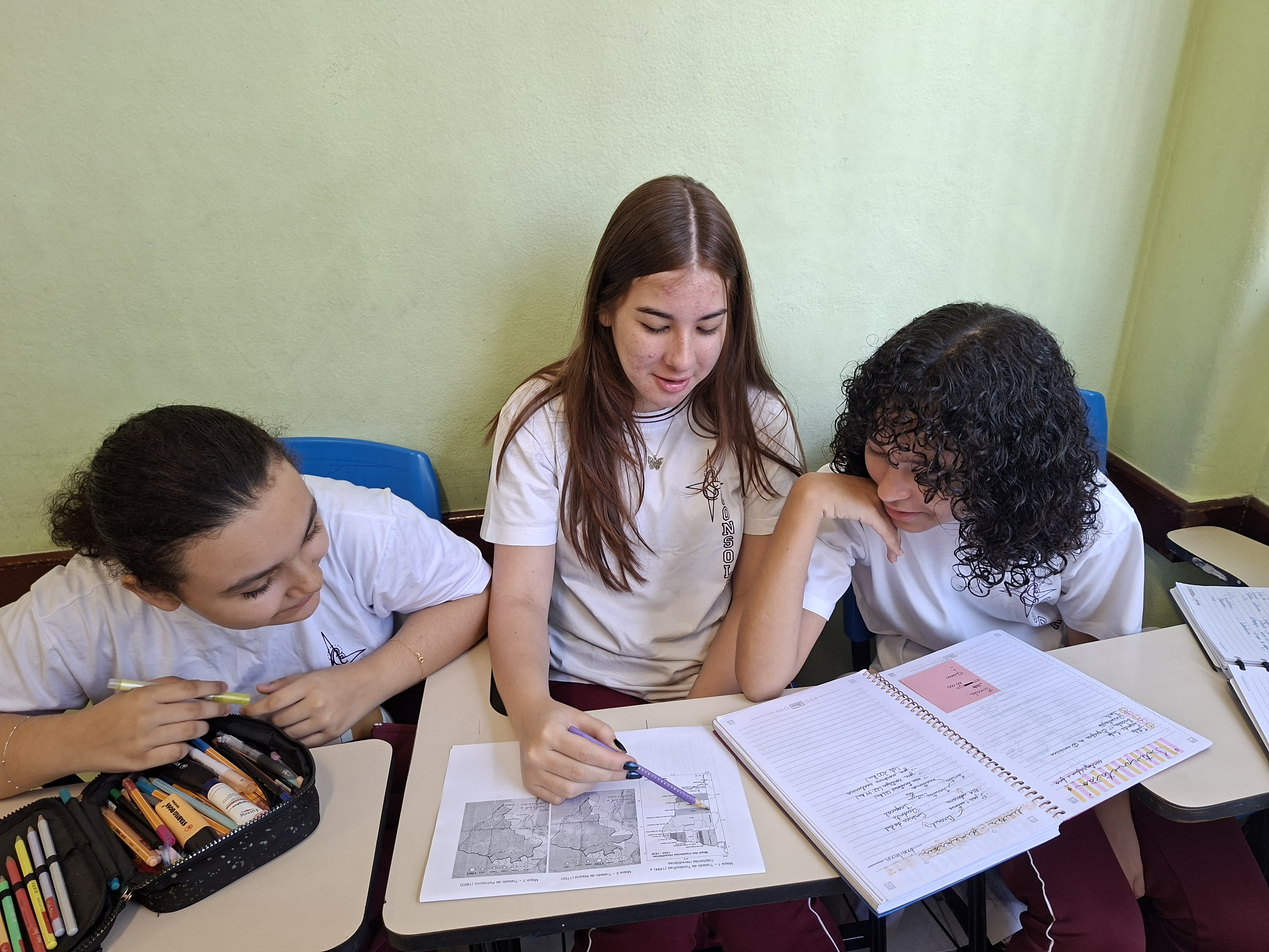 O 7º ano B provou que a Geografia é pura estratégia! Para concluir o estudo sobre a formação do território, o Professor João propôs uma dinâmica de análise cartográfica que agitou a sala.