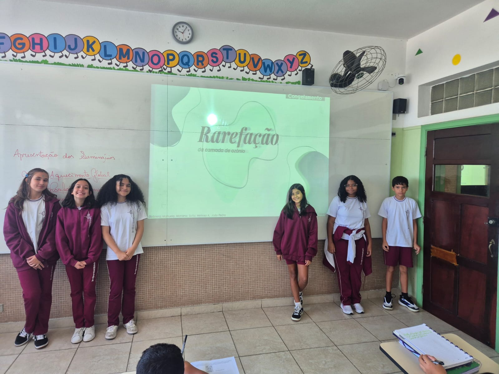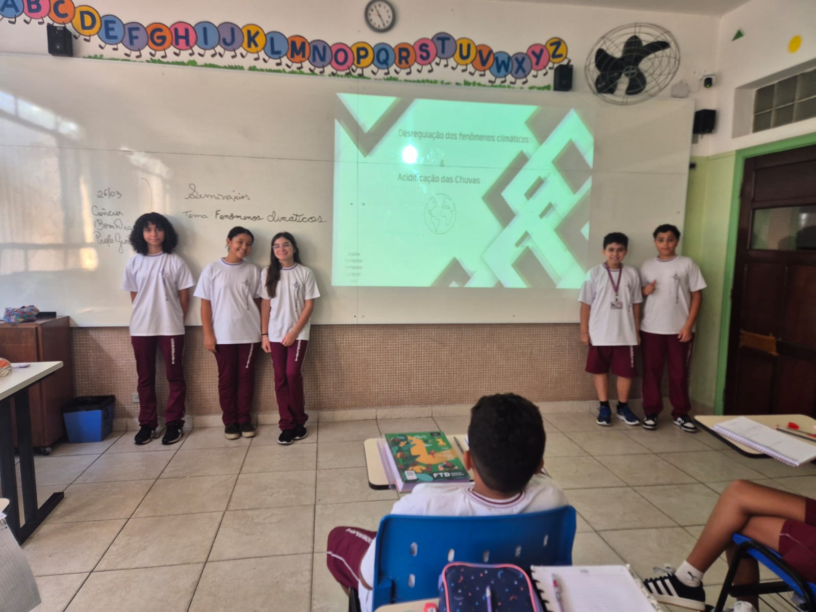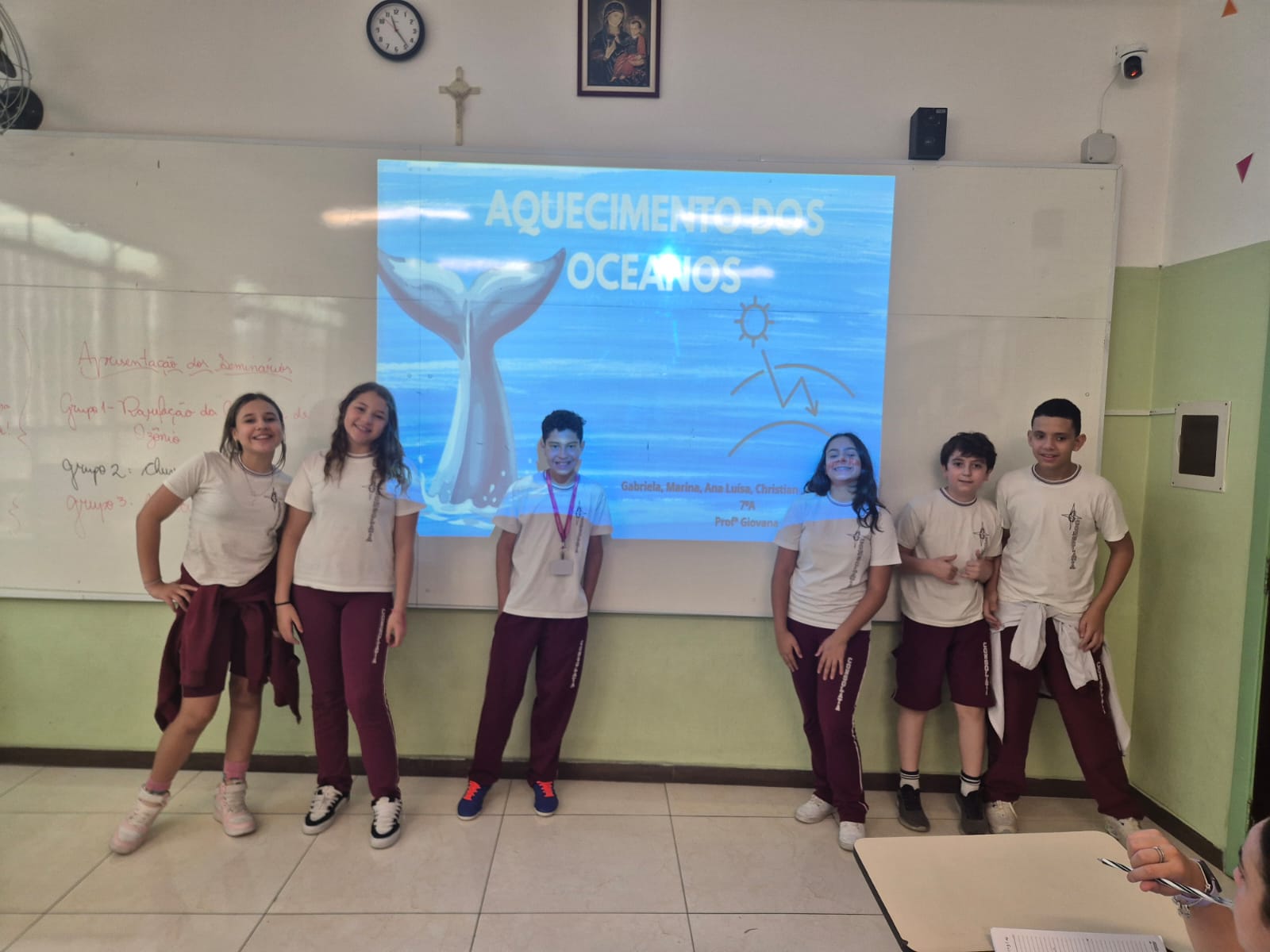 Os alunos dos 7º anos A e B, na disciplina de Ciências, orientados pela professora Giovana, protagonizaram um momento de grande aprendizado ao apresentarem seminários sobre temas atuais e de extrema relevância ambiental, como aquecimento global, aquecimento dos oceanos, desregulação dos fenômenos climáticos e chuva ácida.