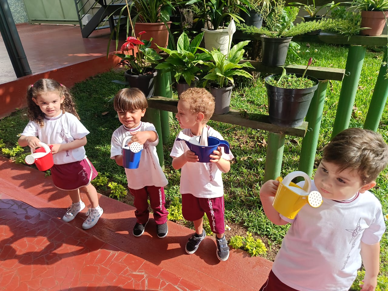 Trabalhando o livro de atividades e descobrindo tudo que há no jardim, os alunos do Infantil 1, após o momento de contemplação realizaram a rega das plantinhas do jardim. Compreenderam a importância da água para a vida botânica e cuidaram com todo amor e carinho do jardim do colégio.