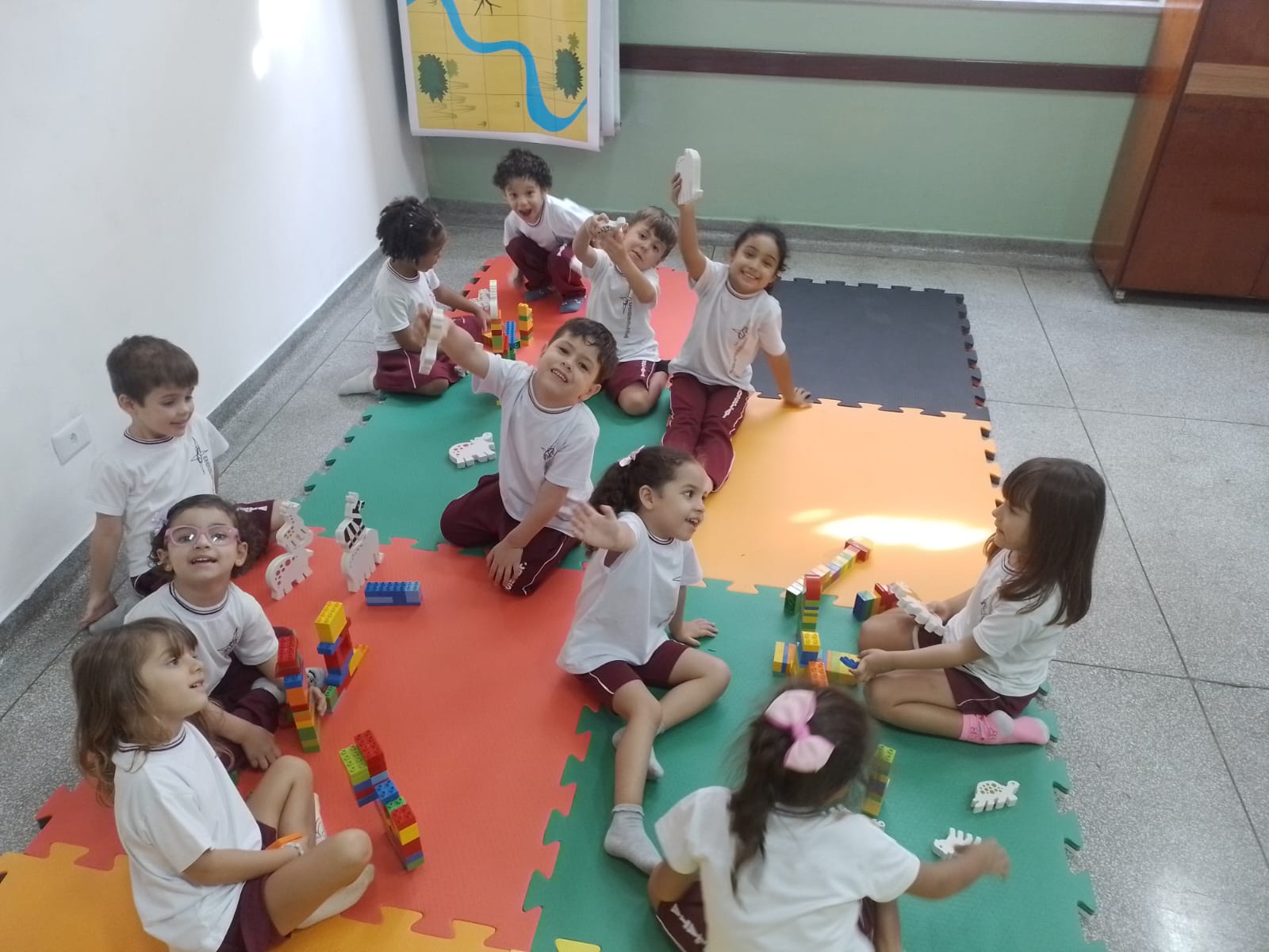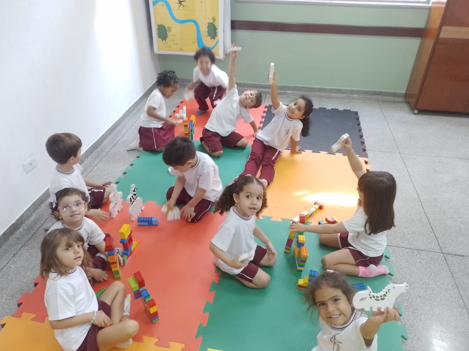 Após descobrirem suas características e curiosidades foram desafiados, em grupos, a criarem uma selva com os animais que mais gostaram.