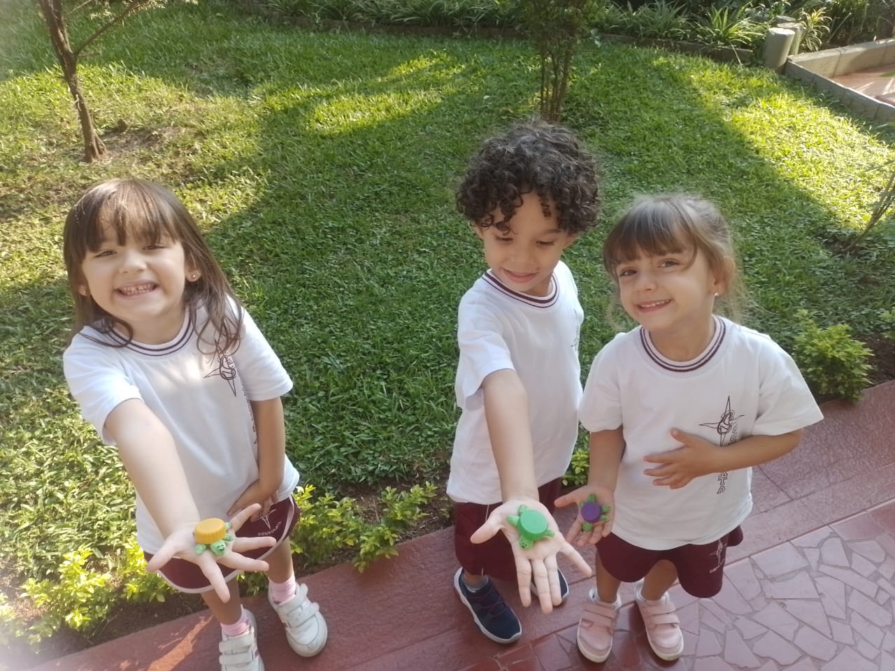 Os alunos do Infantil II confeccionaram tartarugas utilizando massinha de modelar, como complemento ao estudo da plataforma Zoom Education, dentro da proposta “Conhecendo os animais”.