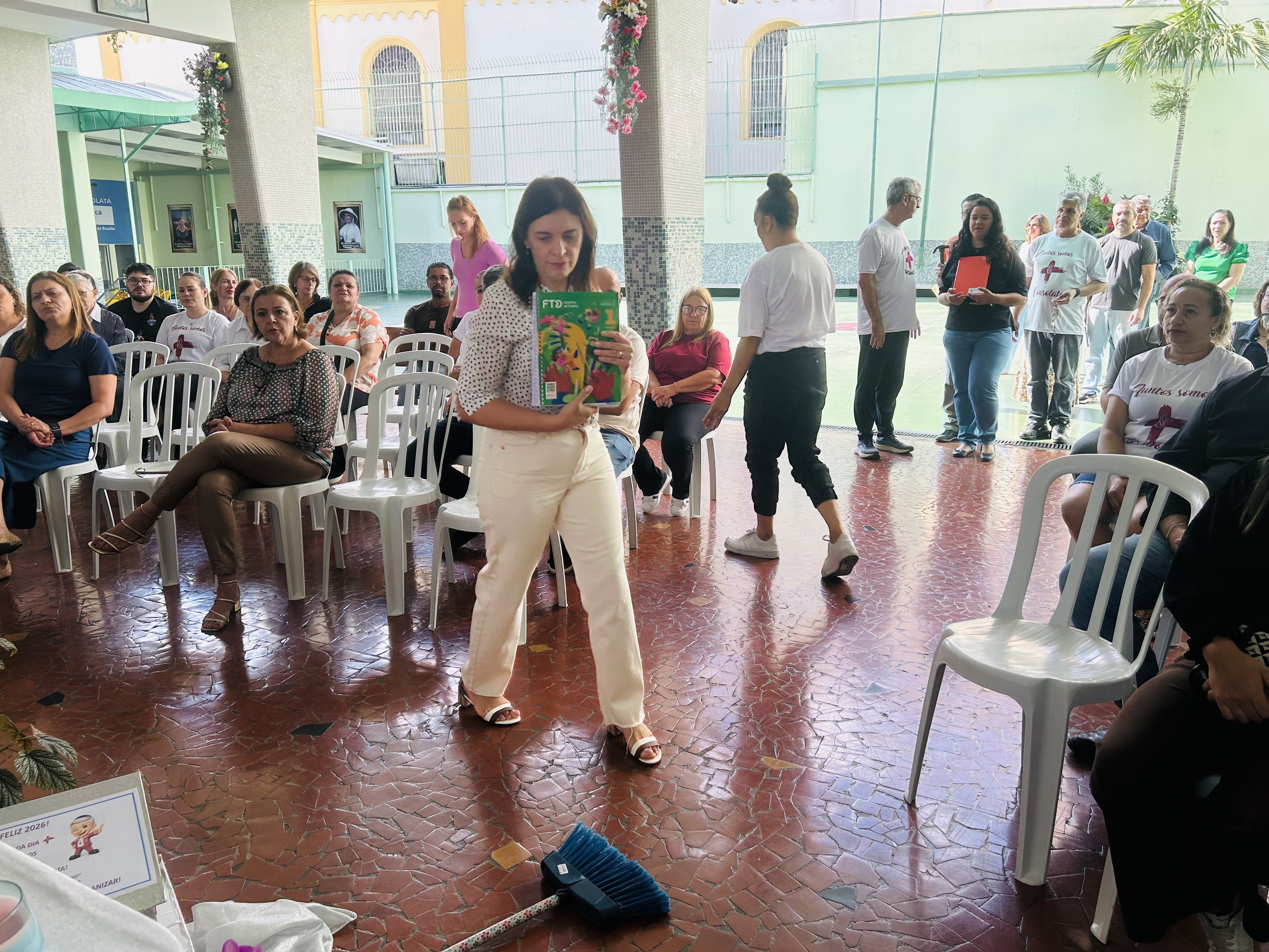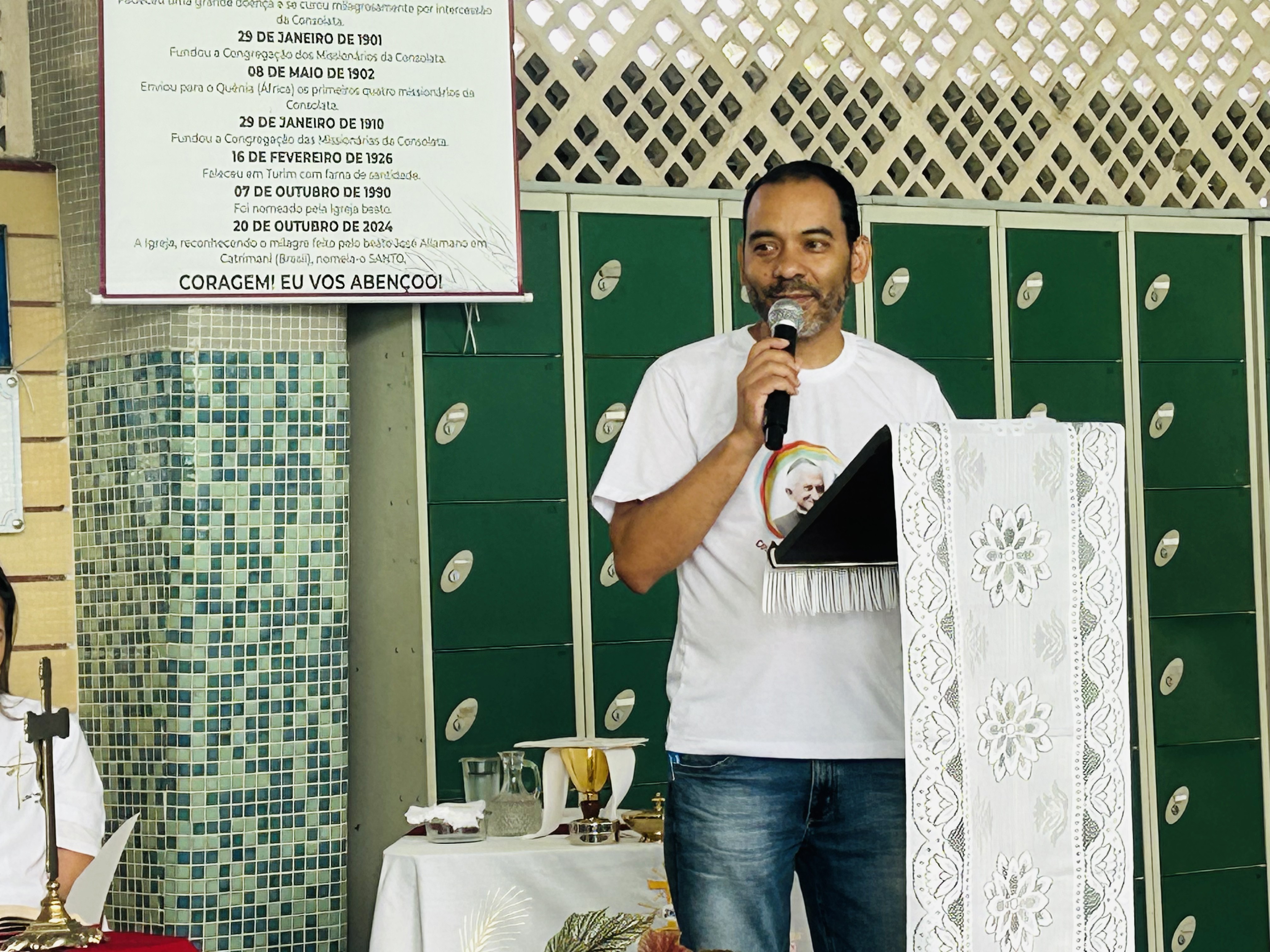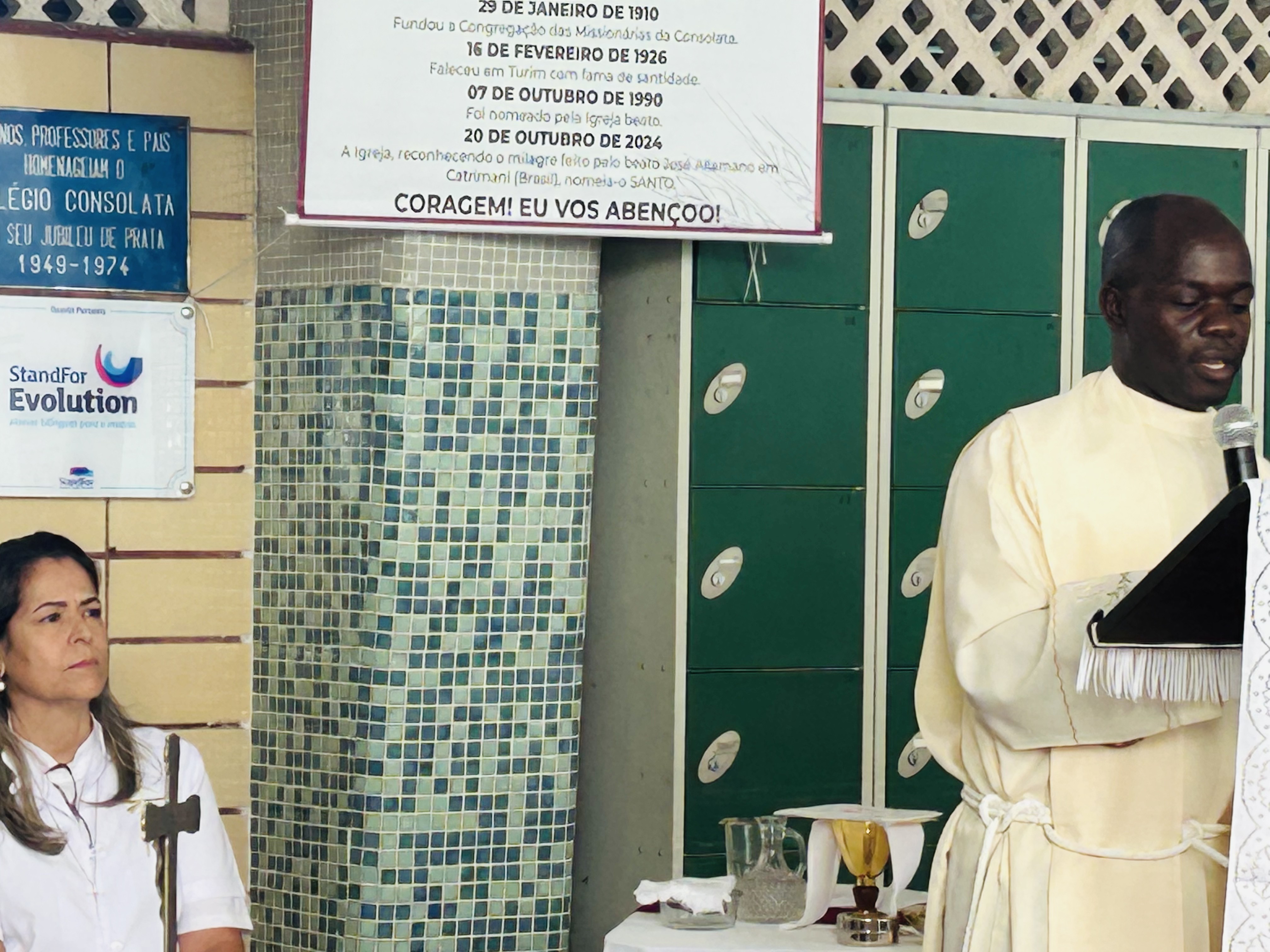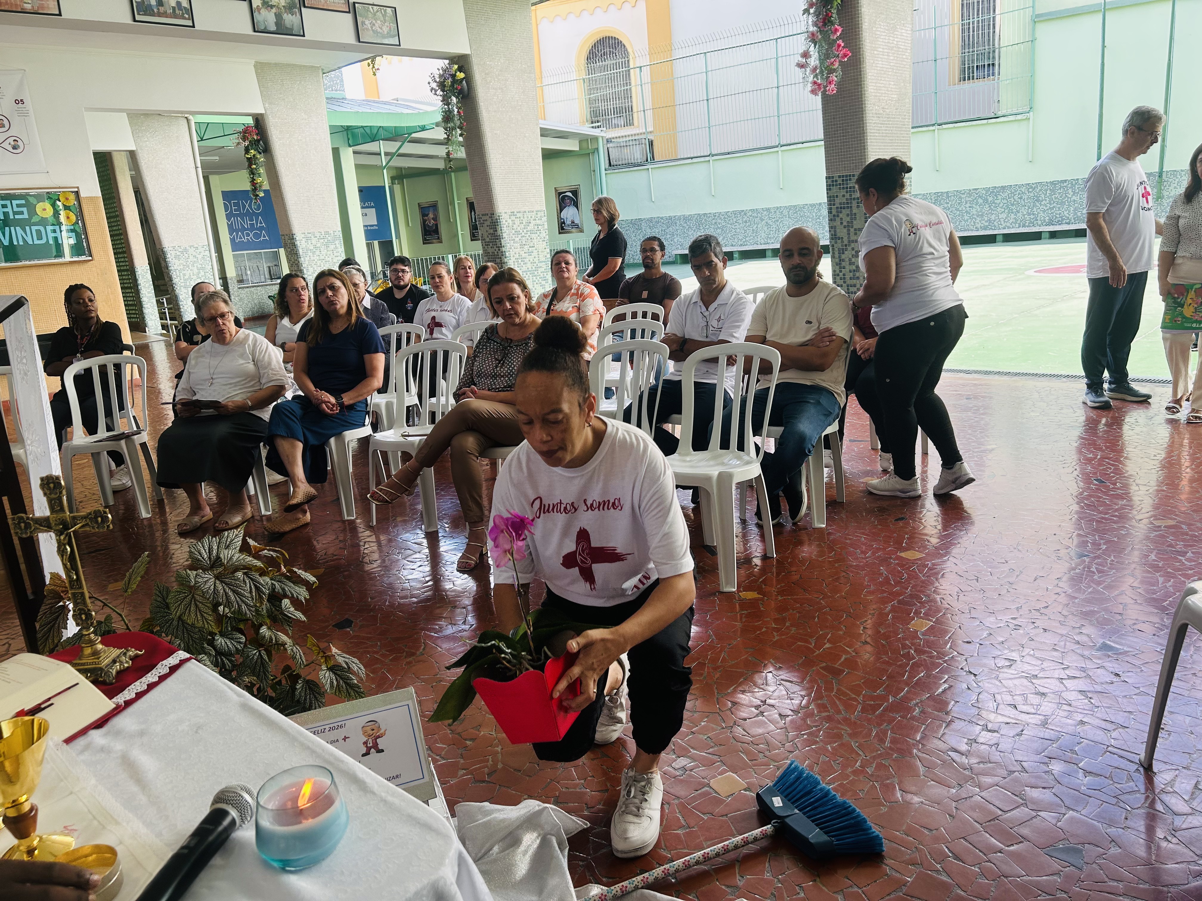 Na celebração da comunidade educativa, presidida pelo Padre Fred Okumo, missionário da Consolata, vivemos juntos a partilha de dons e a entrega de nossas vidas ao Senhor — reconhecendo que tudo o que somos e realizamos encontra sentido em Cristo.