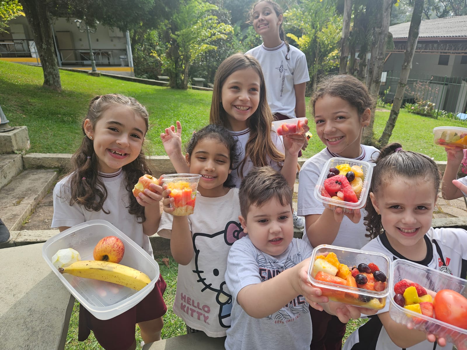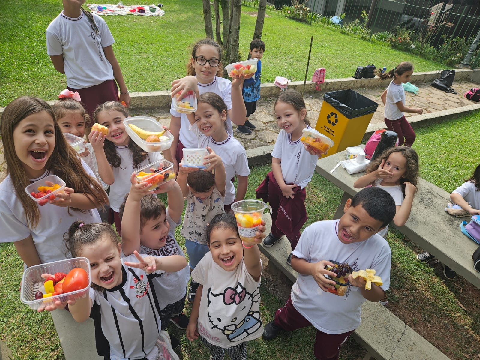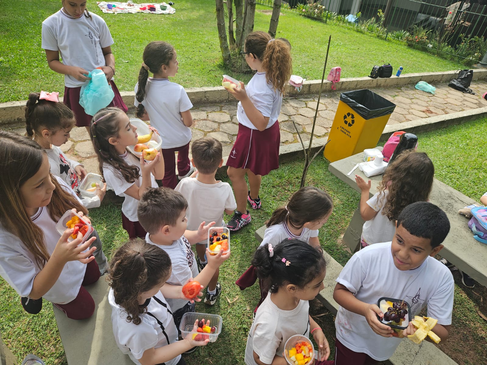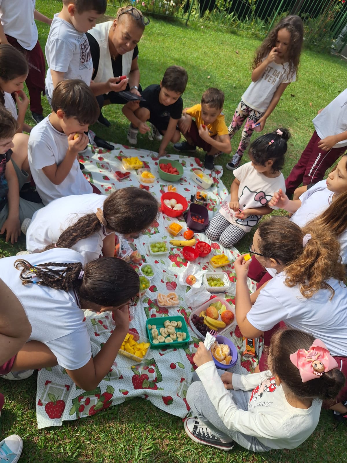 Os alunos do Período Adicional vivenciaram um momento especial com a realização de um piquenique de outono, dedicado à apreciação de frutas.