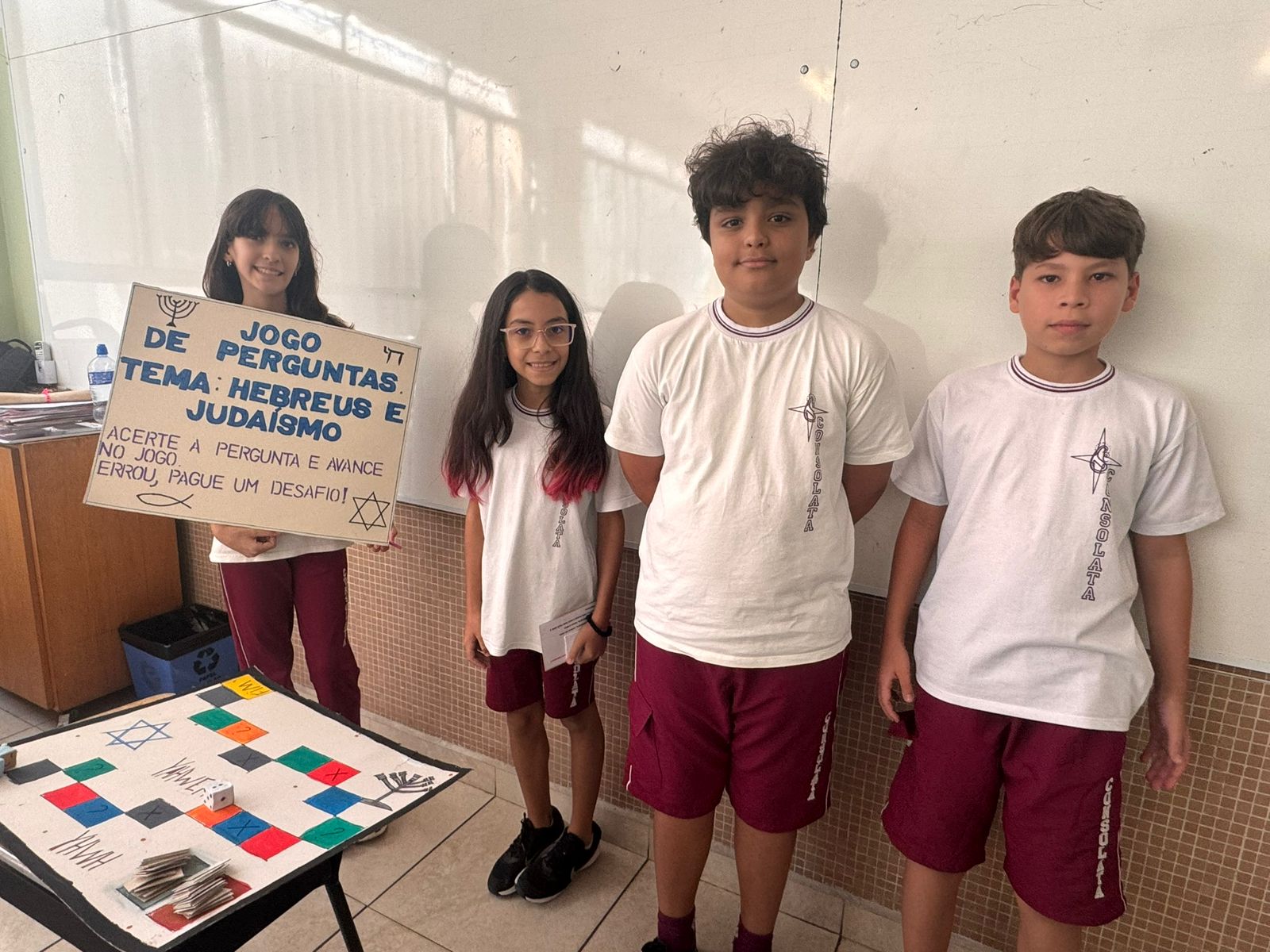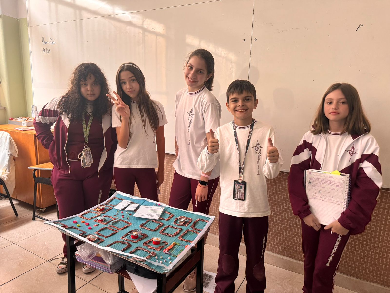 Os alunos do 6º ano idealizaram e desenvolveram um jogo histórico completo, criando regras, estrutura e design, a partir de grandes civilizações como Mesopotâmia, Egito Antigo, Grécia, Roma e a história dos hebreus.design, a partir de grandes civilizações como Mesopotâmia, Egito Antigo, Grécia, Roma e a história dos hebreus.
