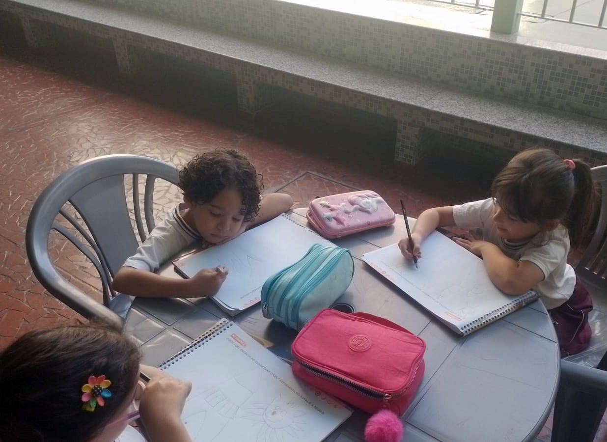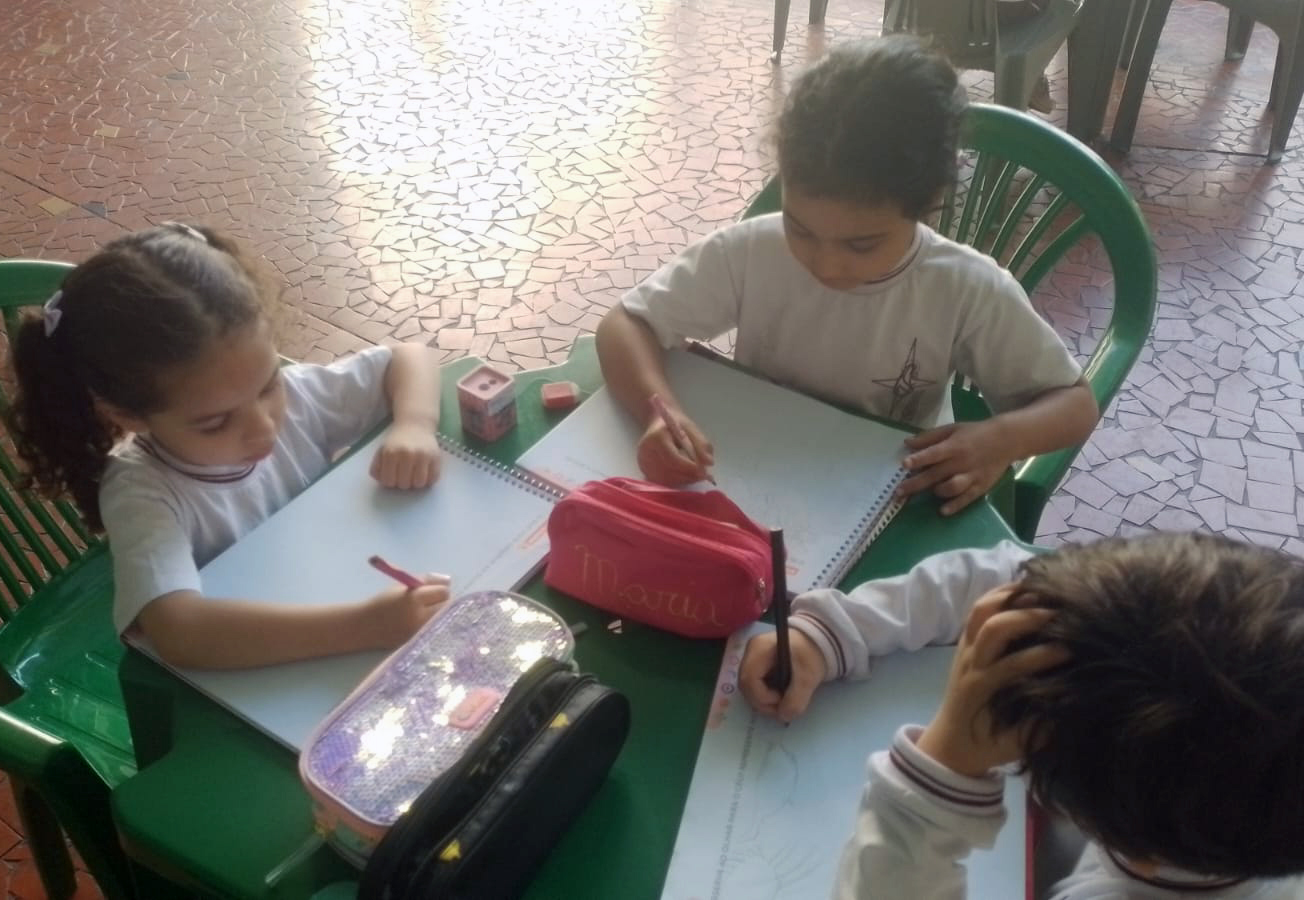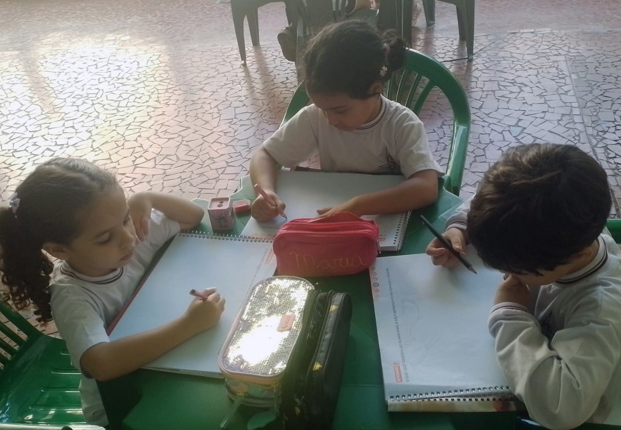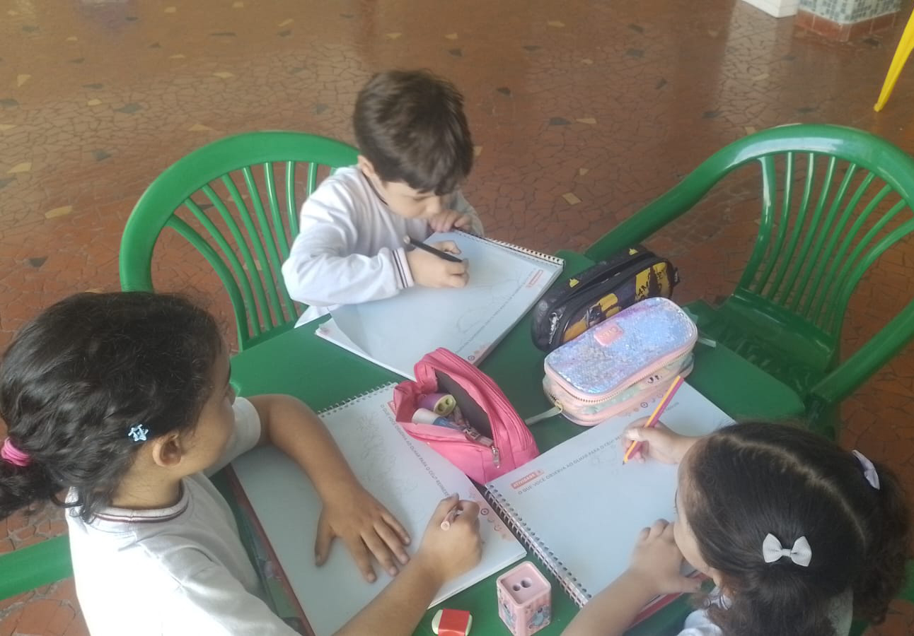 Para finalizar, os alunos registraram suas observações por meio da atividade proposta no livro paradidático, Módulo 2 – “O que você observa ao olhar para o céu?”. Esse momento permitiu a sistematização do conhecimento adquirido, incentivando a reflexão e a expressão das descobertas realizadas ao longo da aula.