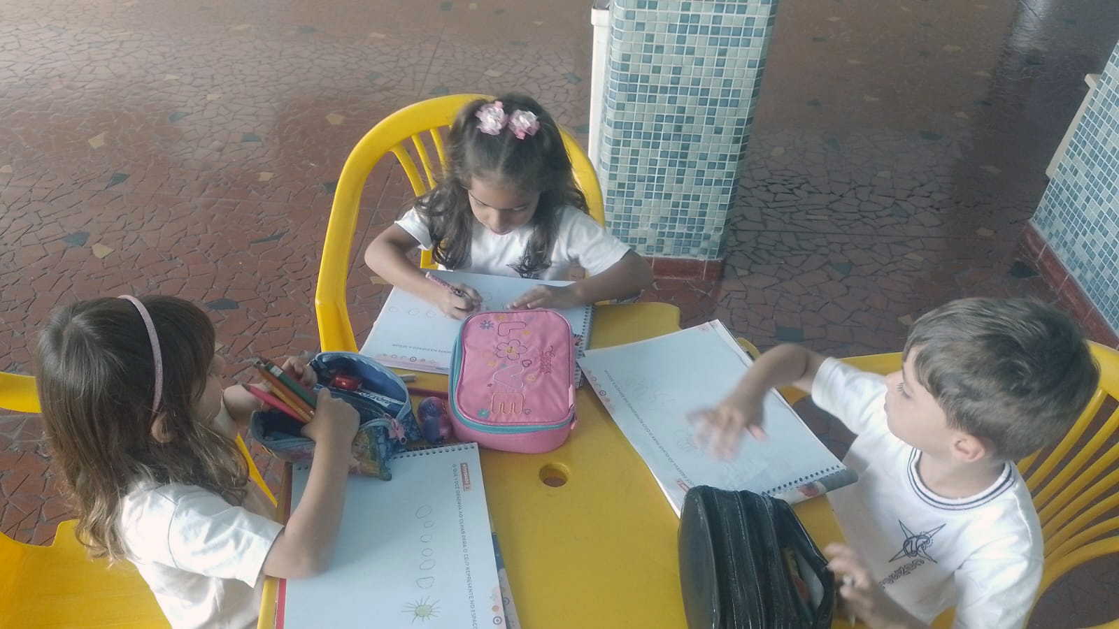 Em seguida, os alunos foram até o pátio da escola para realizar uma observação direta do céu. Nesse momento, puderam identificar alguns dos elementos discutidos anteriormente, percebendo as formas das nuvens, a intensidade da luz solar e outros detalhes do ambiente. A atividade prática contribuiu para tornar o aprendizado mais significativo e concreto.