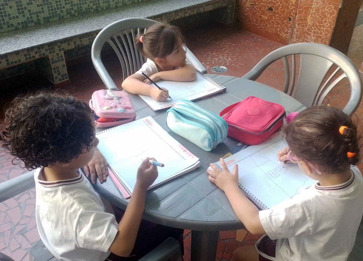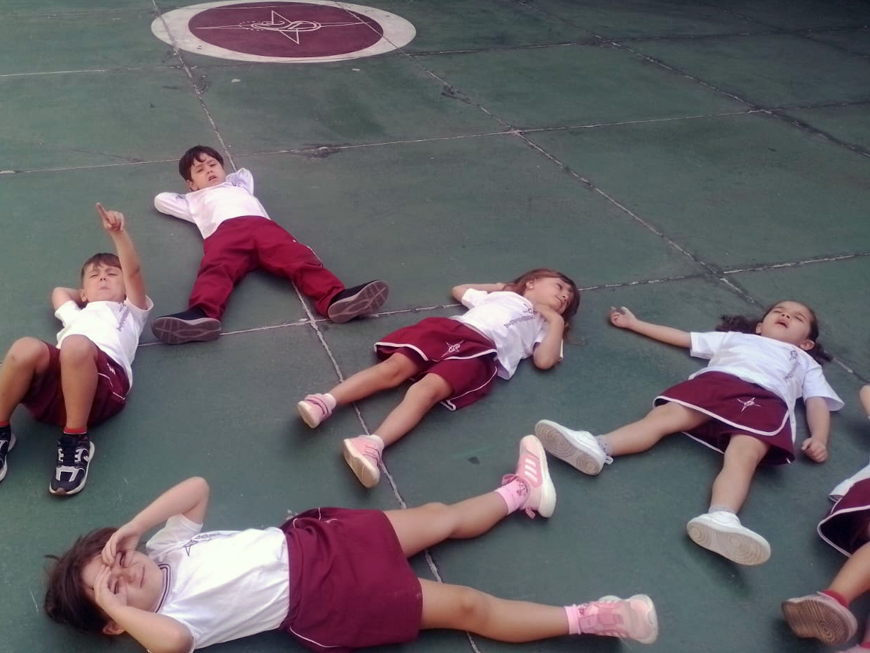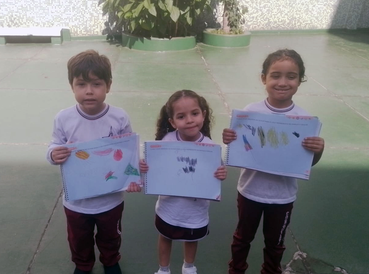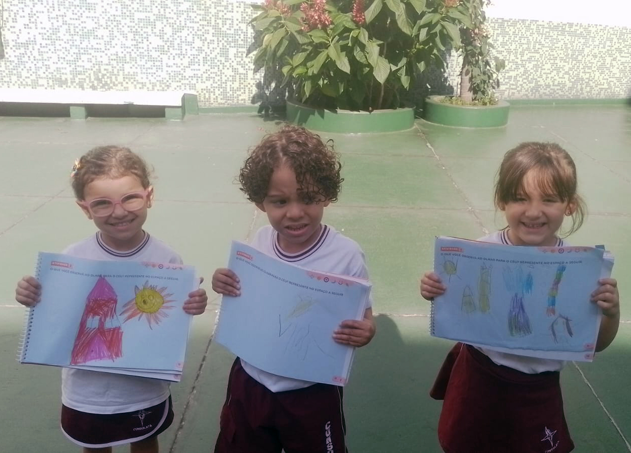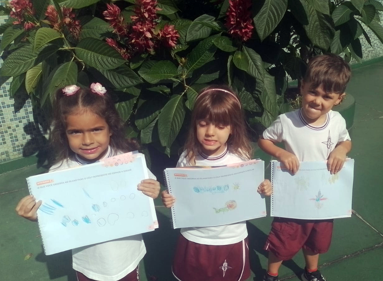 O estudo do céu durante o dia foi iniciado com uma roda de conversa, na qual os alunos do Infantil II compartilharam seus conhecimentos prévios sobre o que é possível observar no céu nesse período. Surgiram comentários sobre o Sol, as nuvens, os pássaros e até mesmo o vento, despertando a curiosidade e o interesse de todos.