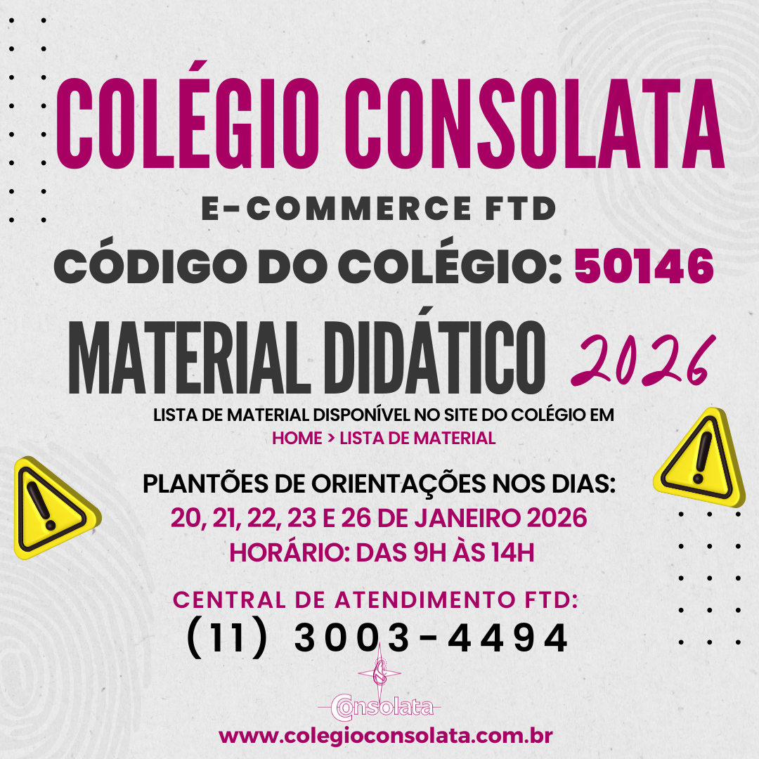 ATENÇÃO: VENDA DOS MATERIAIS DISPONÍVEIS NO ECOMMERCE DA FTD - UTILIZE O CÓDIGO: 50146 - MAIS INFORMAÇÕES NA PÁGINA DA LISTA DE MATERIAIS E NA AGENDAEDU.