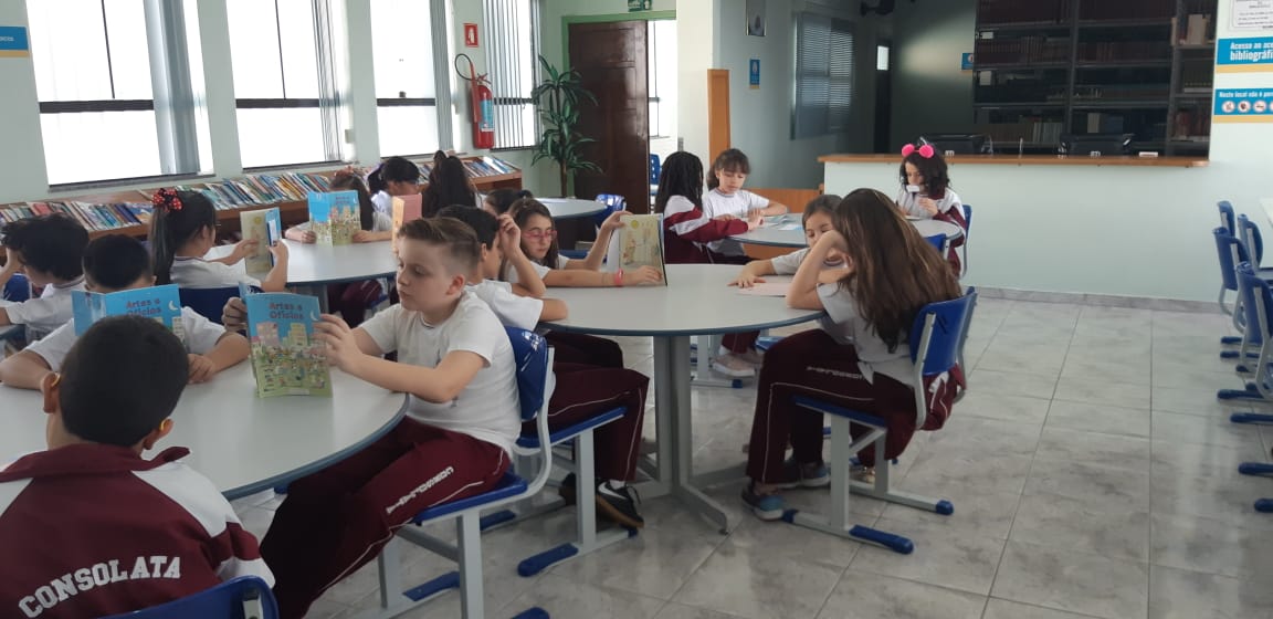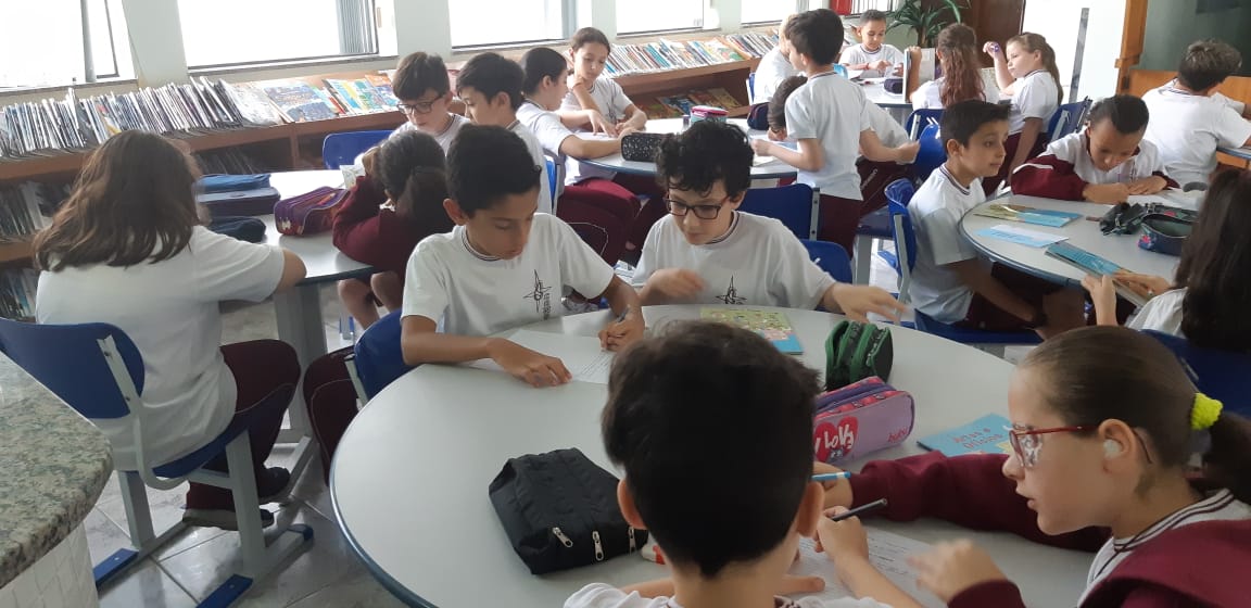 Nas aulas de Língua Portuguesa deste semestre, os alunos do 4° ano retornaram às aulas na biblioteca do Colégio.