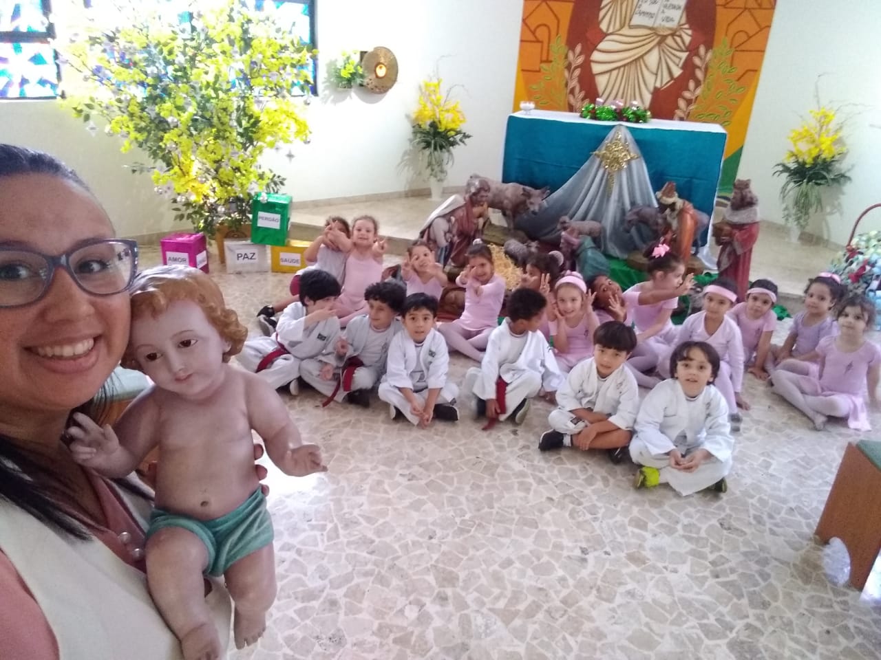 Nossas crianças e jovens, da Educação Infantil ao Ensino Médio, demonstraram grande sensibilidade e provaram que seguem crescendo na fé e nos valores cristãos. Aos pés do presépio depositaram seus pedidos ao Menino Luz e agradeceram todas as graças recebidas no Ano Jubilar.