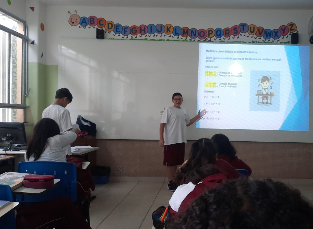 Os alunos dos 7ºs anos participaram de atividades relacionadas à matéria e fizeram apresentação dos trabalhos conforme o que aprenderam em aula.