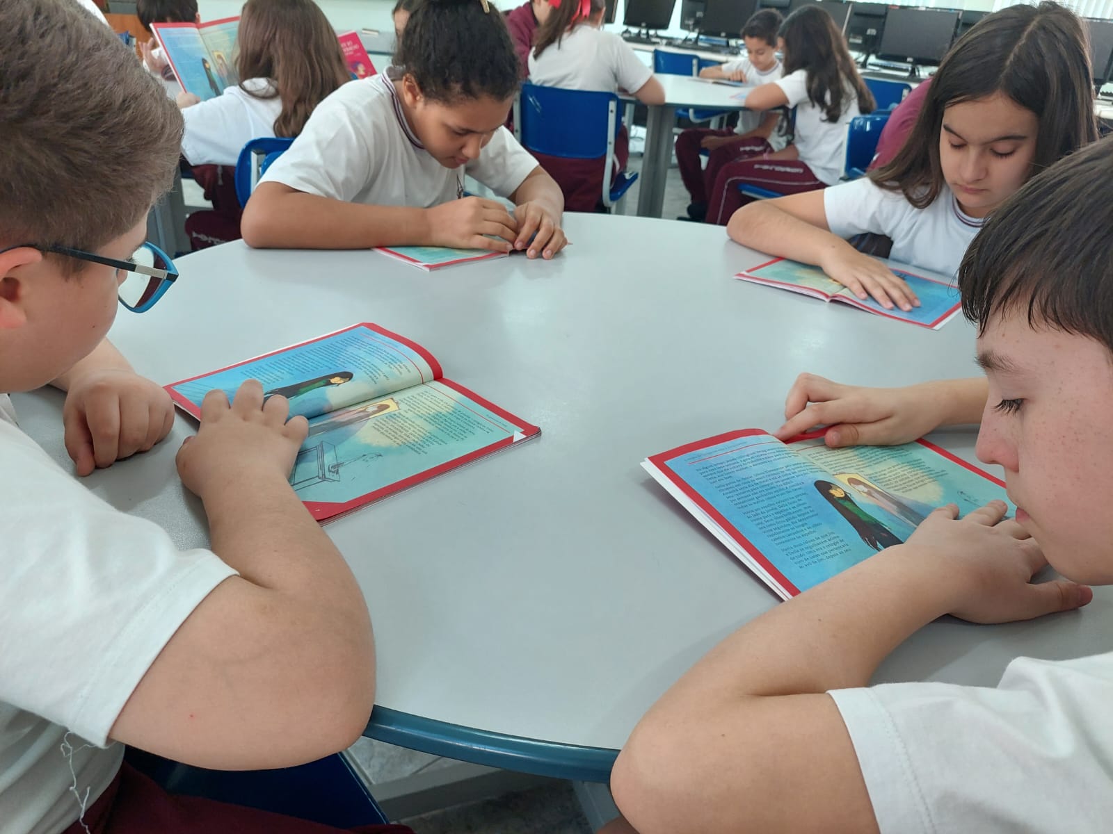 Os alunos dos 5ºs anos seguem com a leitura compartilhada do livro paradidático O Resgate do Cacique Vermelho.