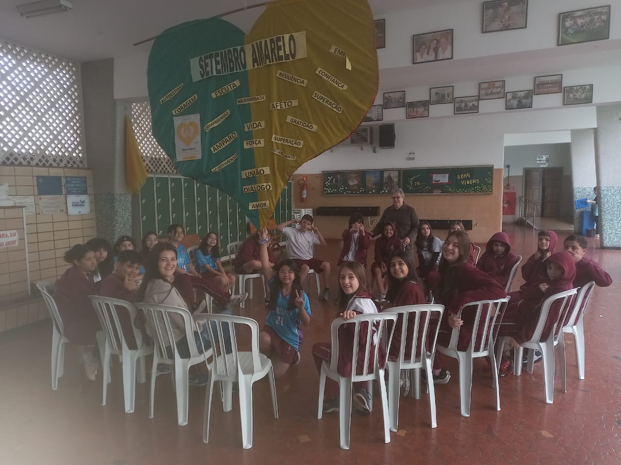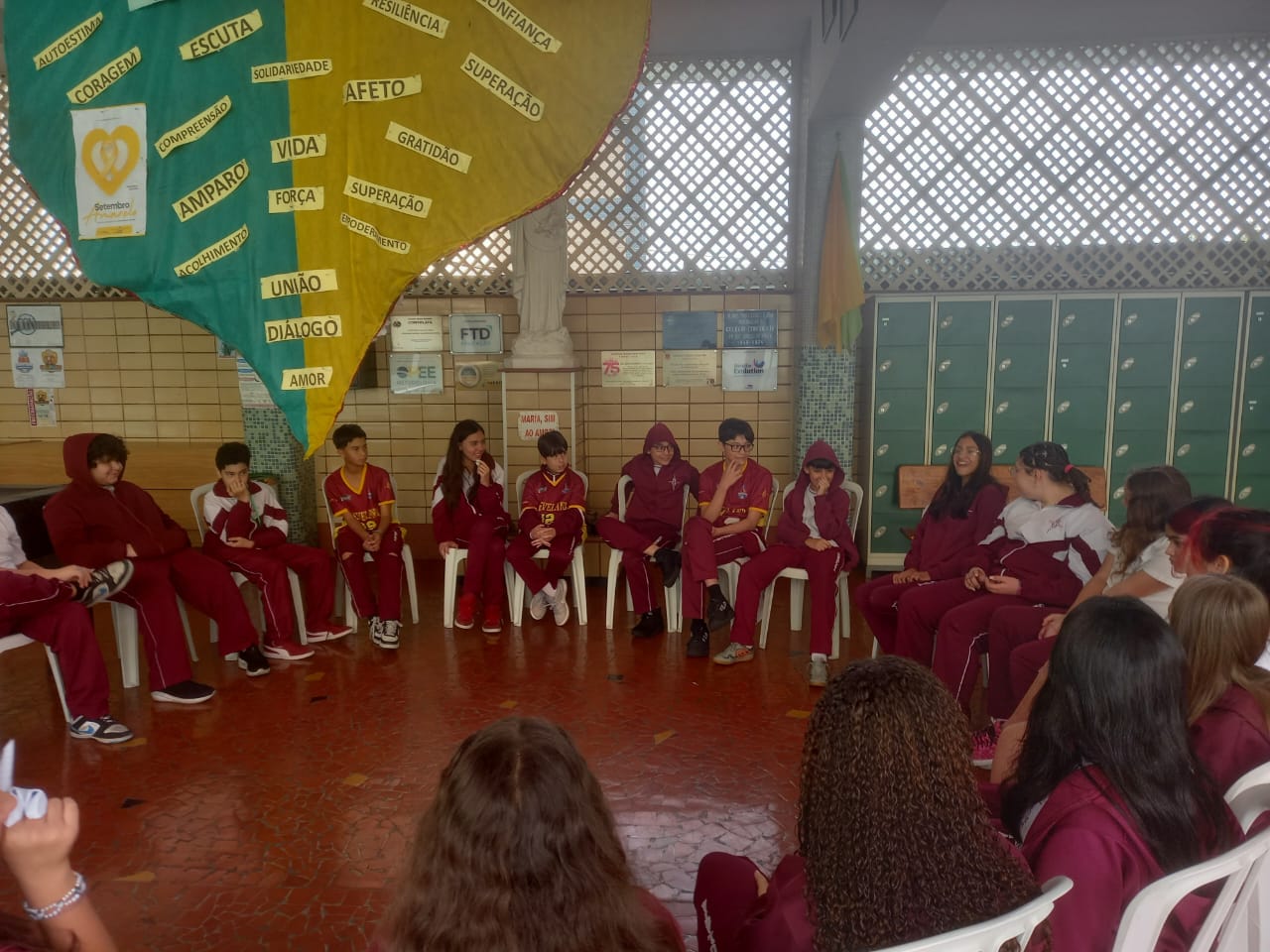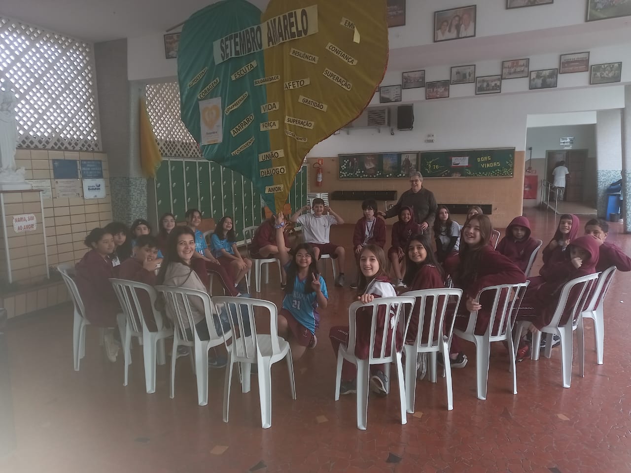 Os alunos dos 6ºs anos do Ensino Fundamental participaram de uma roda de conversa sobre a valorização da vida, refletindo a partir da campanha Setembro Amarelo.