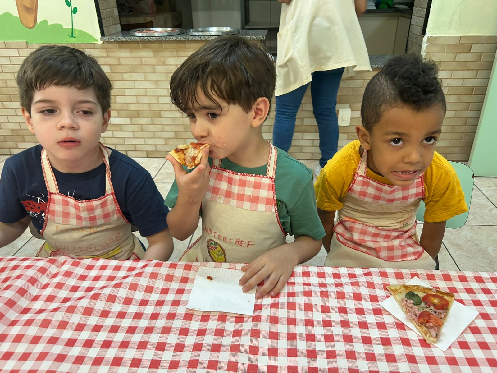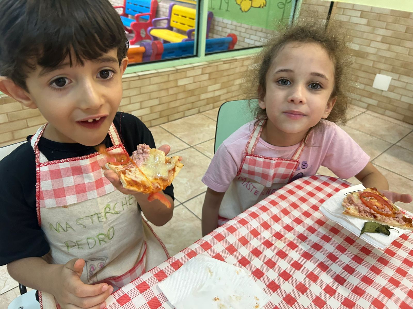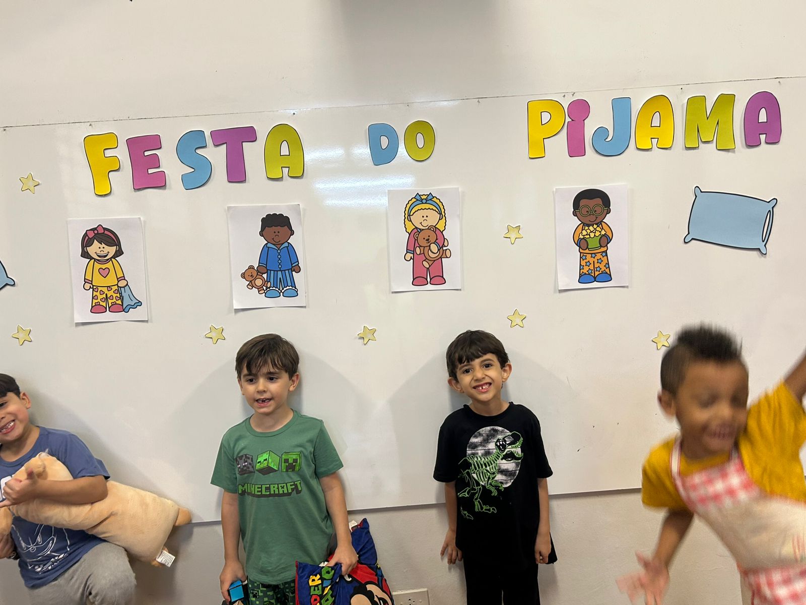 O grupo do Infantil III participou da "Tarde do Pijama", uma atividade especial dividida em quatro momentos: visita à casa das irmãs fortalecendo vínculos afetivos; culinária com preparação de pizzas, desenvolvendo habilidades motoras e valorizando a cultura italiana; orientação lúdica sobre higiene bucal; e uma baladinha na cabana para celebrar a amizade com música e brincadeiras. Foi uma tarde com muitas cores, sabores e aprendizados.