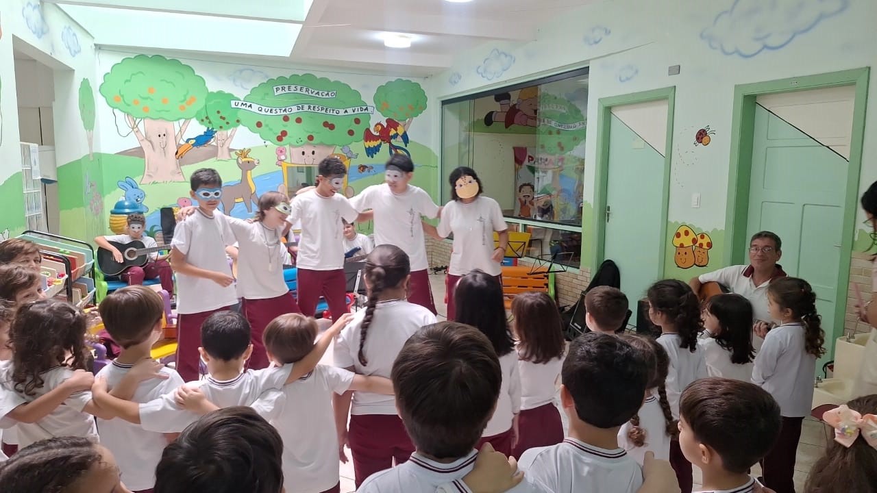 O Professor Vinícius e a turma de violão animaram o Período Adicional com uma vivência especial de cantigas de roda, resgatando brincadeiras tradicionais e fortalecendo os laços entre os alunos. Entre palmas, risadas e canções, os estudantes experimentaram a magia da música como forma de expressão, convivência e criatividade.