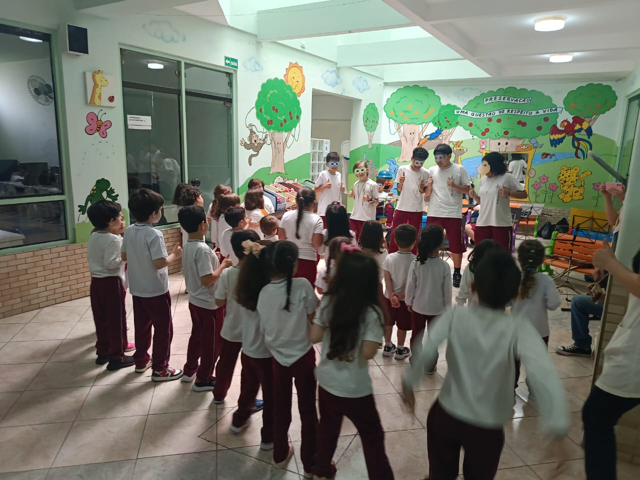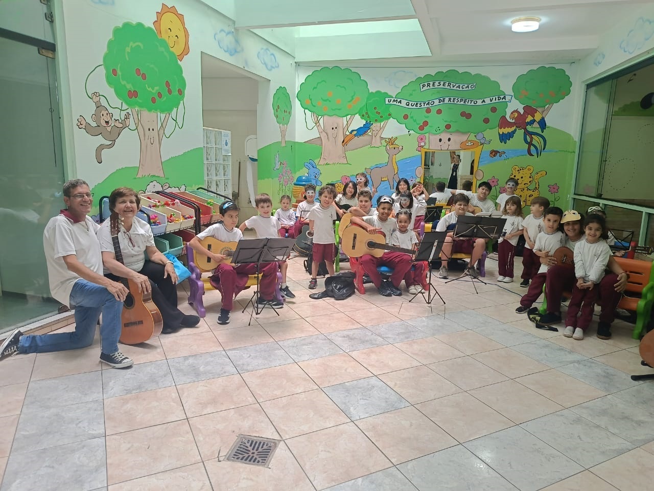 O Professor Vinícius, junto com a turma de violão, levou alegria e música para os alunos da Educação Infantil, resgatando brincadeiras tradicionais e promovendo momentos de integração, ritmo e movimento. Entre palmas, sorrisos e canções, as crianças aprenderam sobre cultura popular de forma leve, divertida e repleta de encantamento.