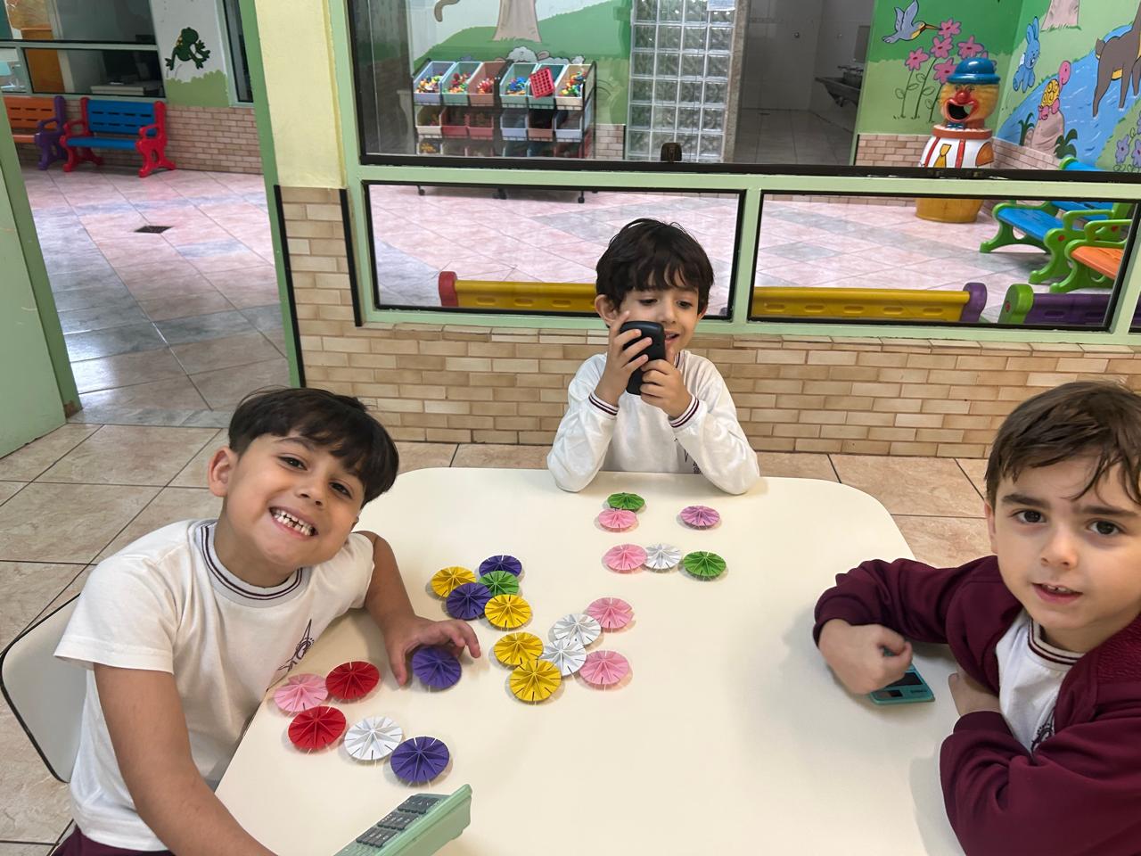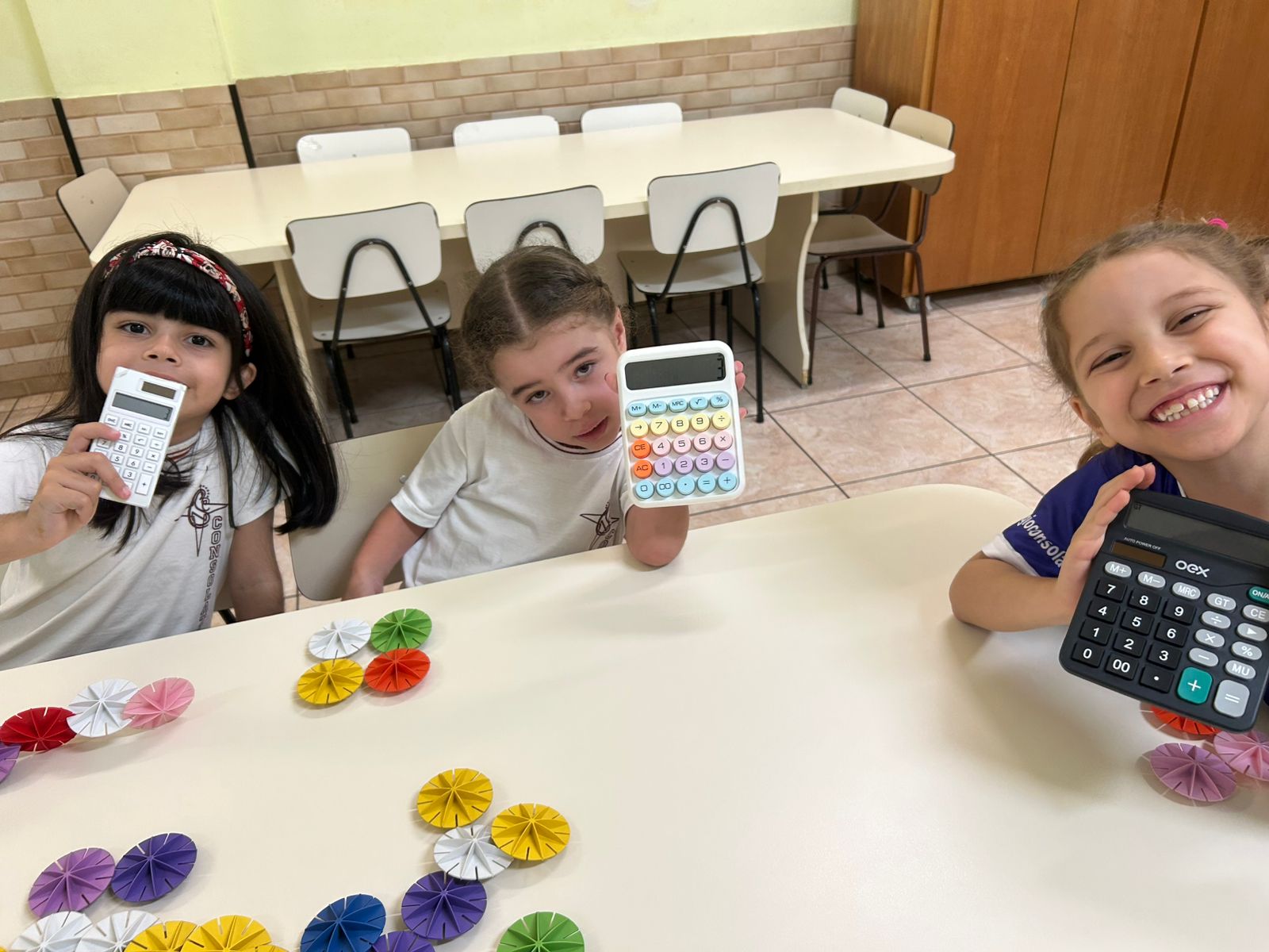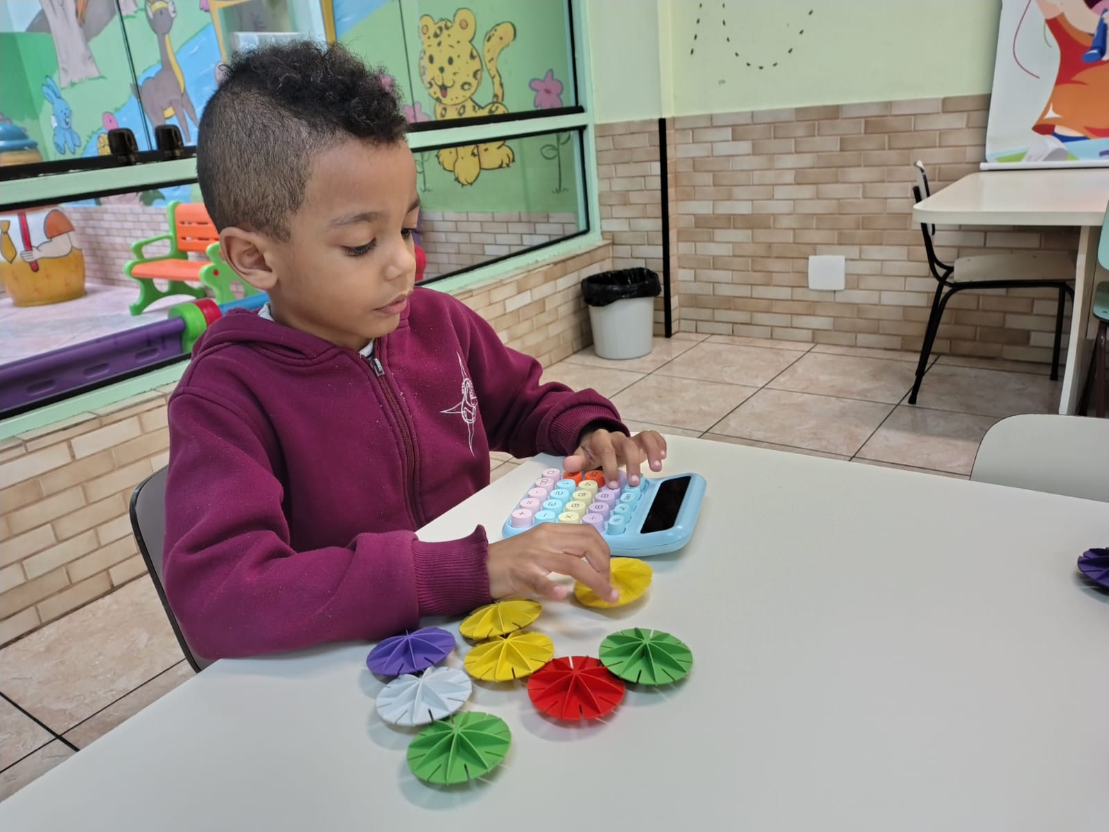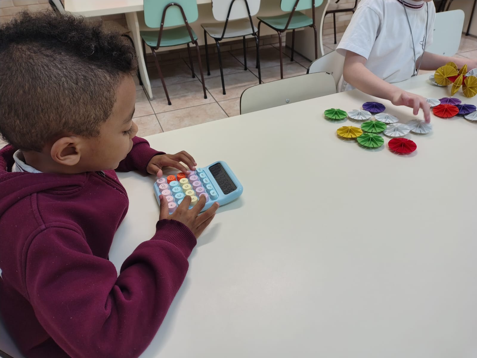 O Infantil 3, explorou as somas simples de um jeitinho diferente: usando pecinhas, contando com os amigos e registrando tudo na calculadora!