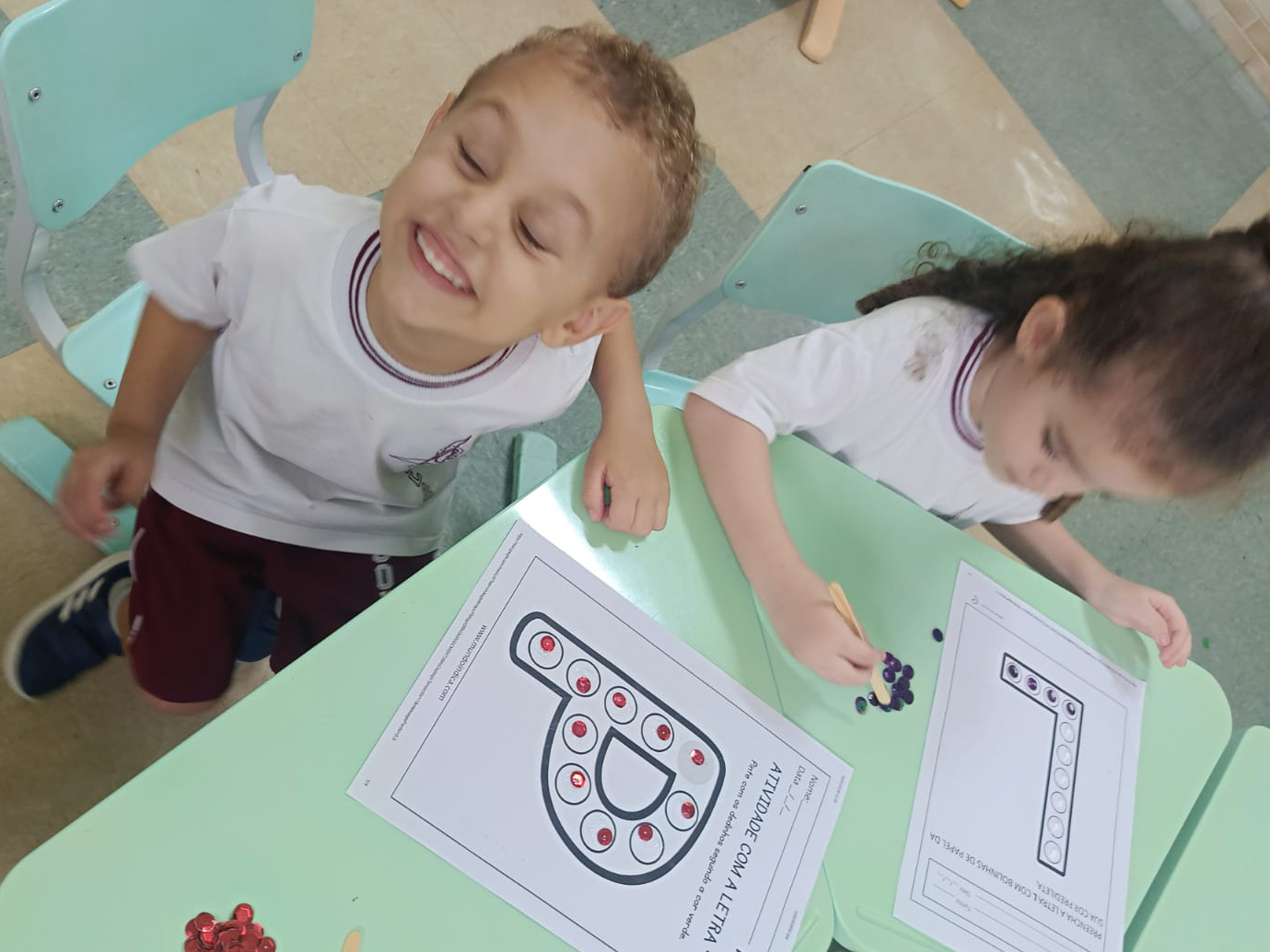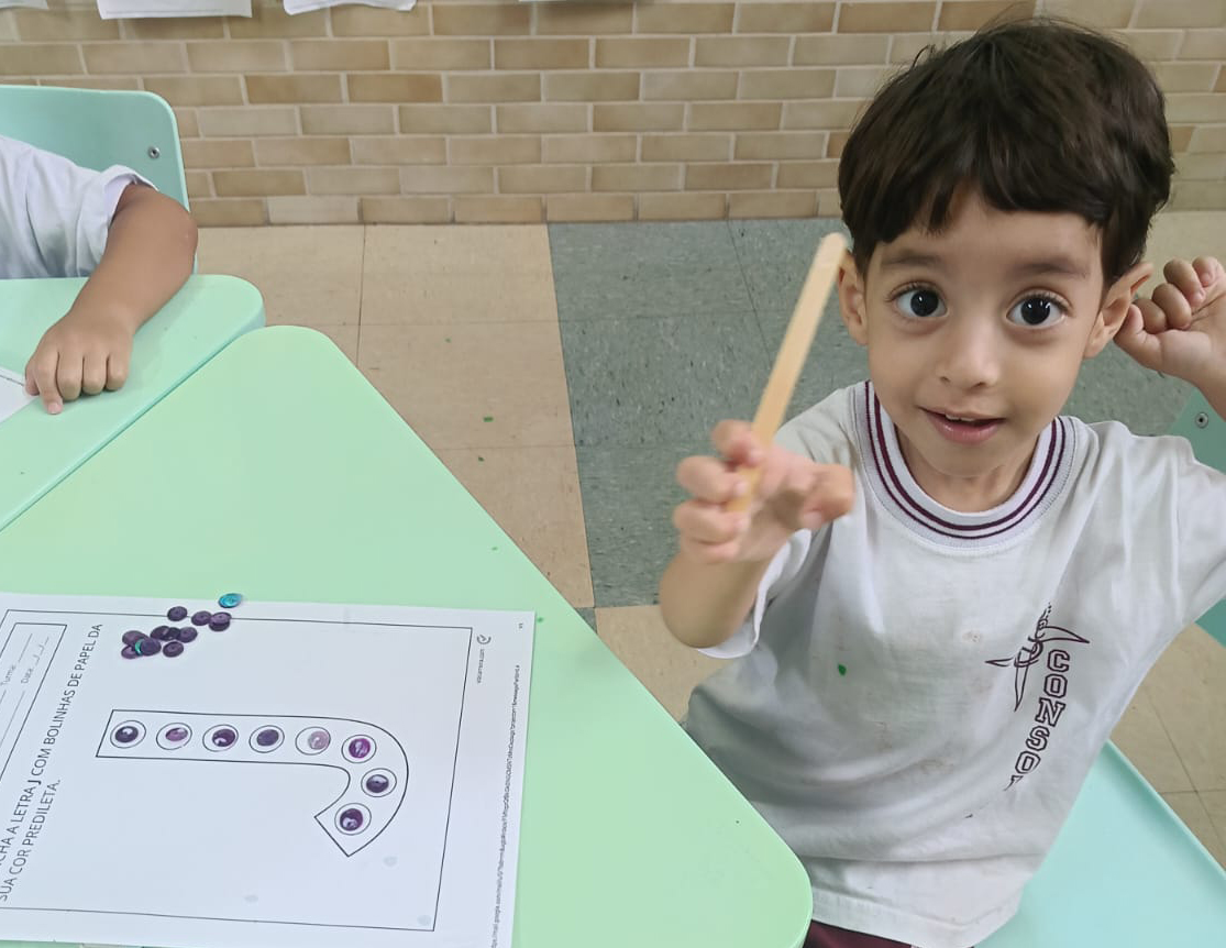 A turma do Infantil 1 trabalhou a coordenação motora e o reconhecimento da letrinha inicial dos seus nomes com uma atividade muito interessante.