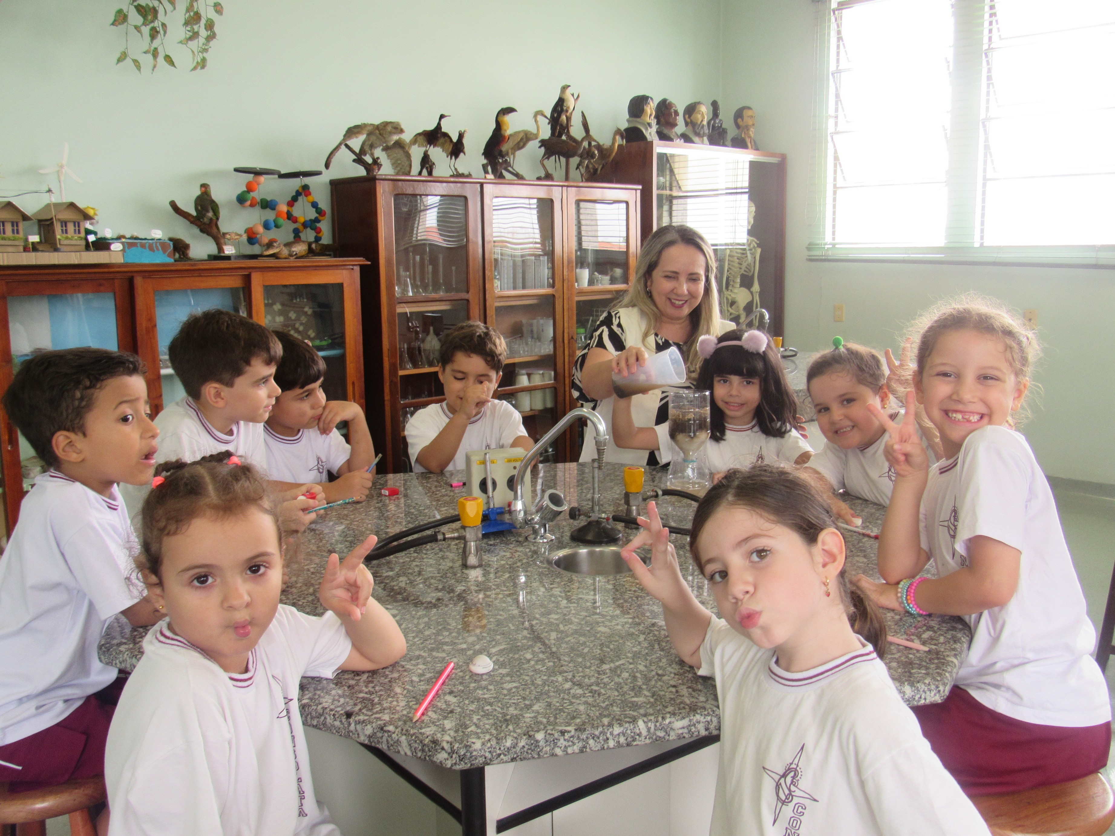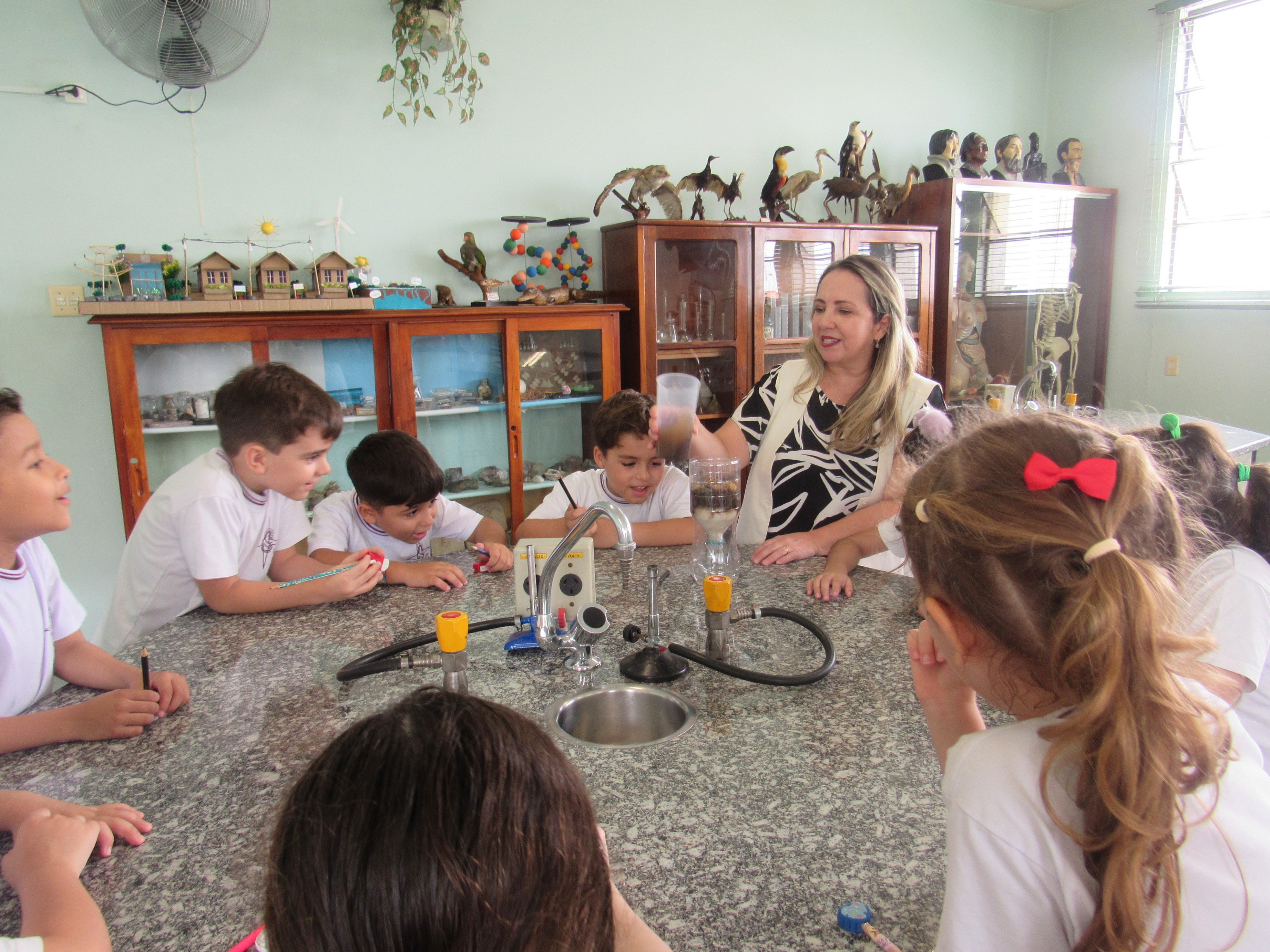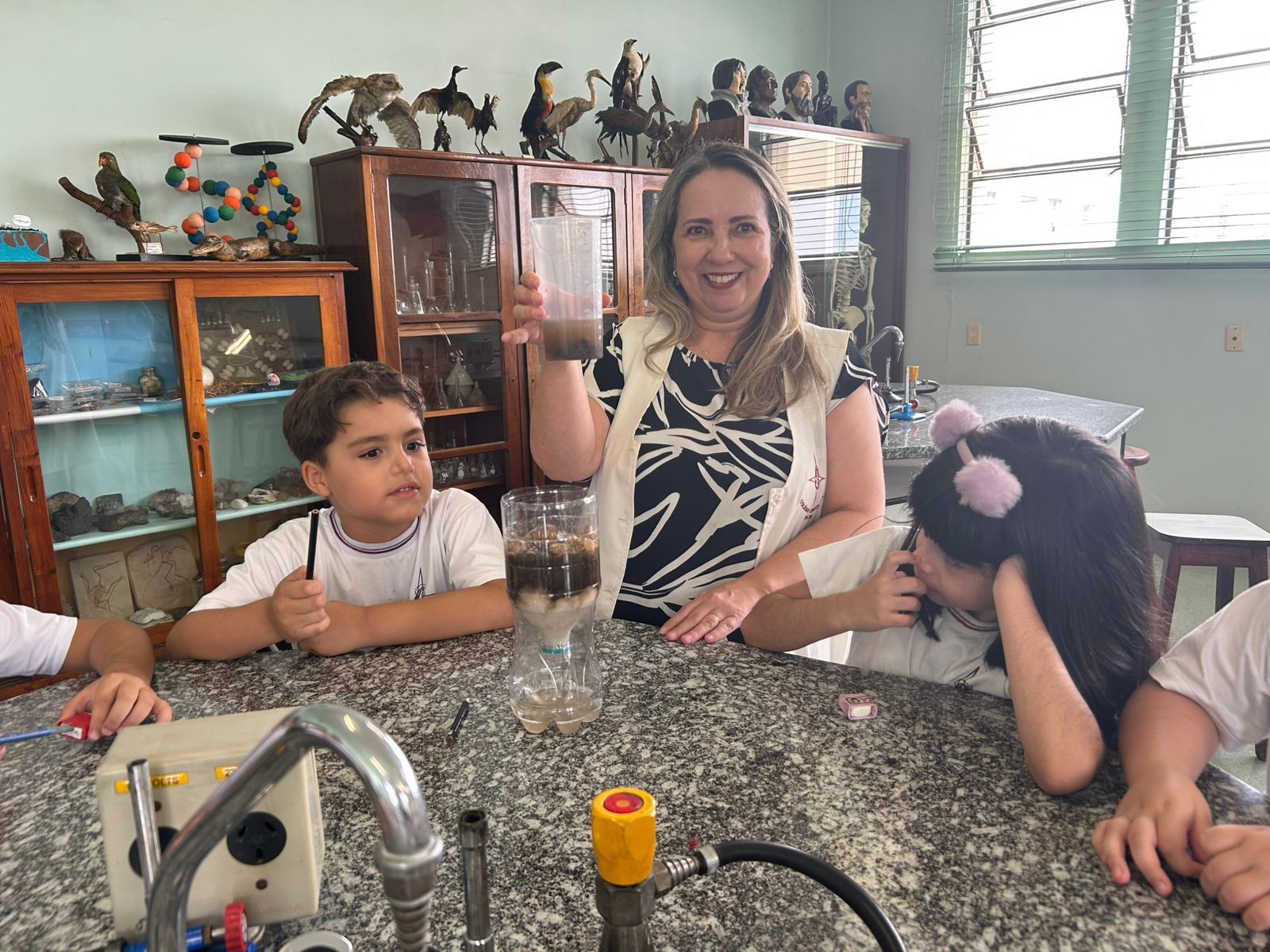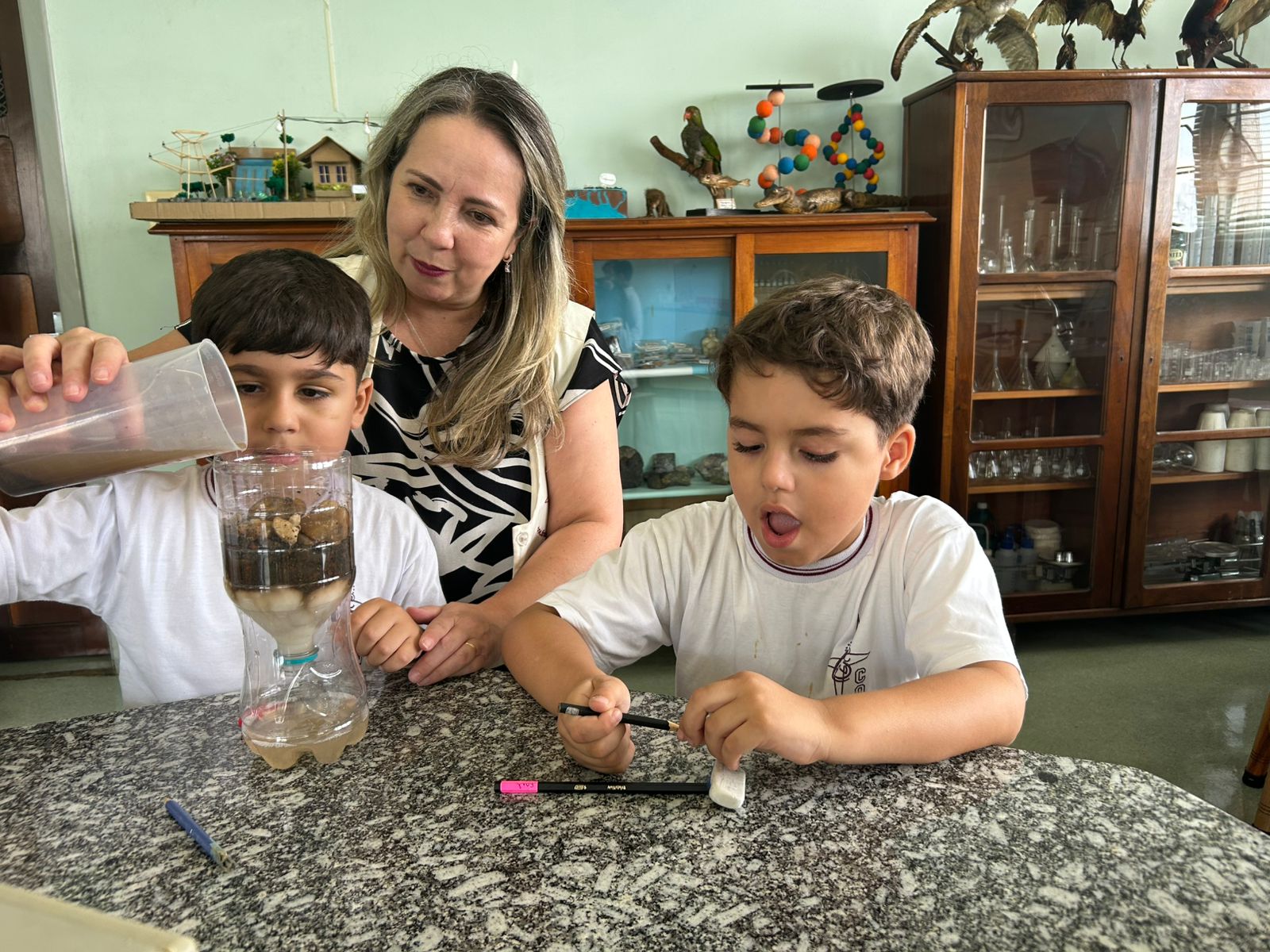 Em comemoração ao Dia da Água, os alunos do 1º ano A e B aprenderam sobre o processo de filtragem da água por meio de uma experiência prática no laboratório de ciências.