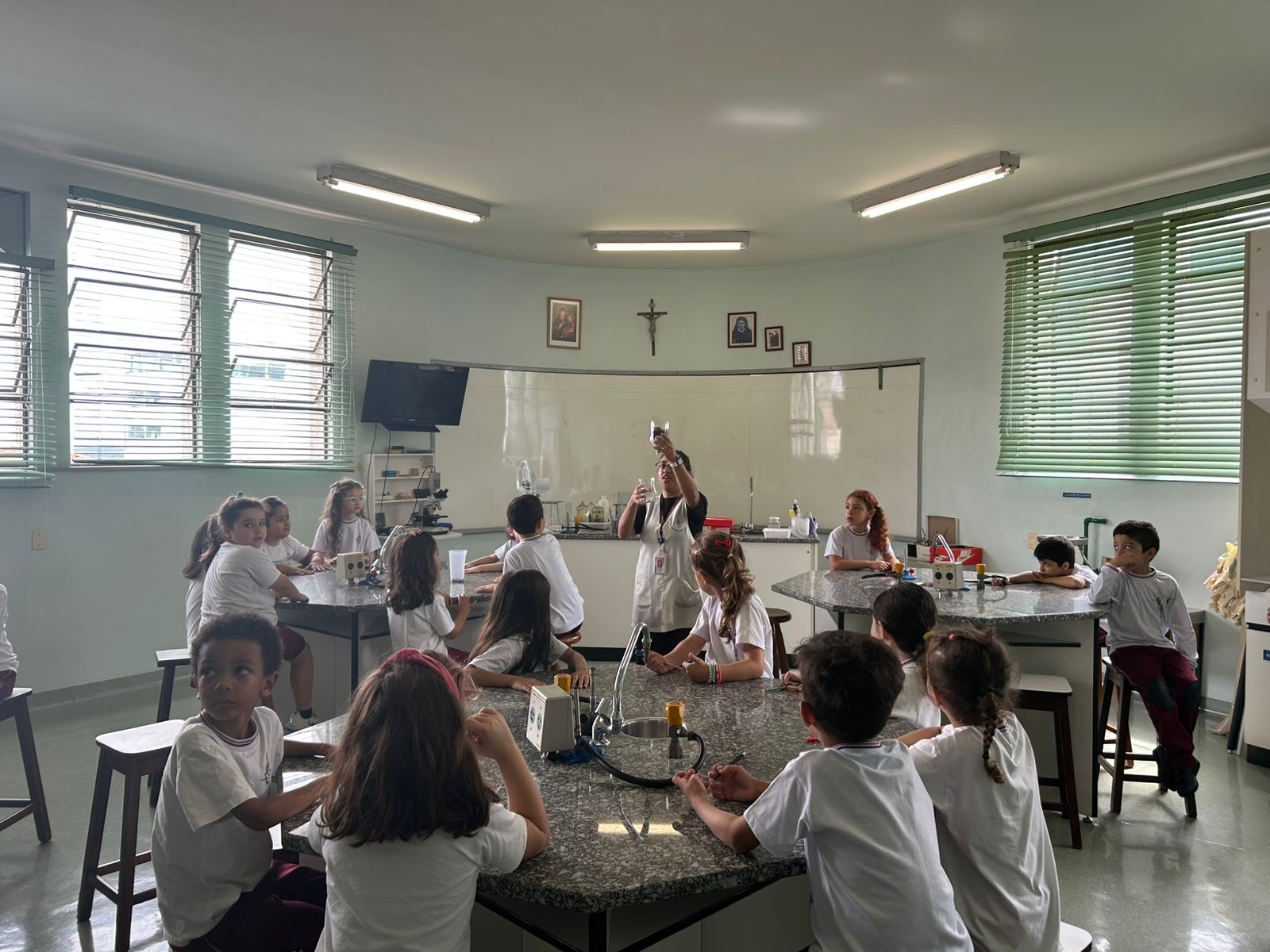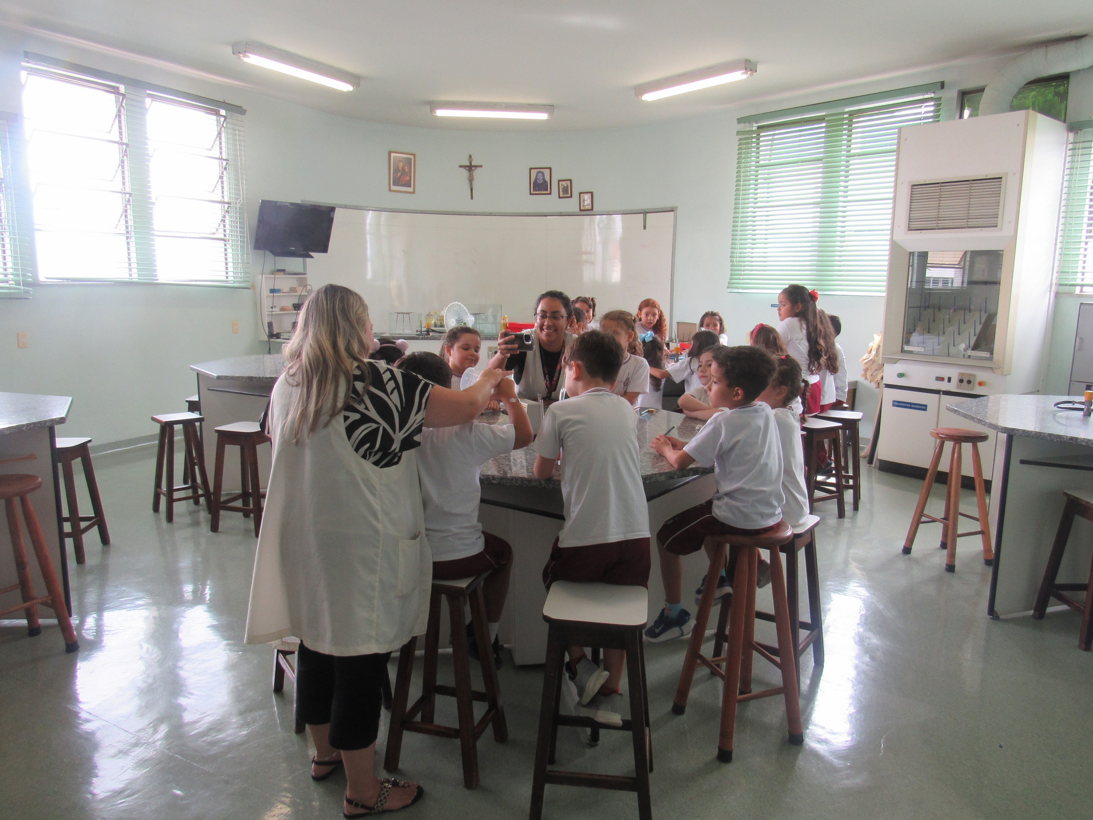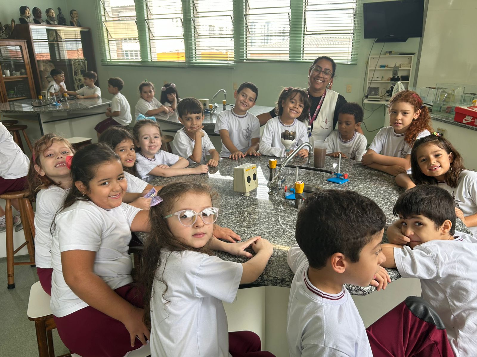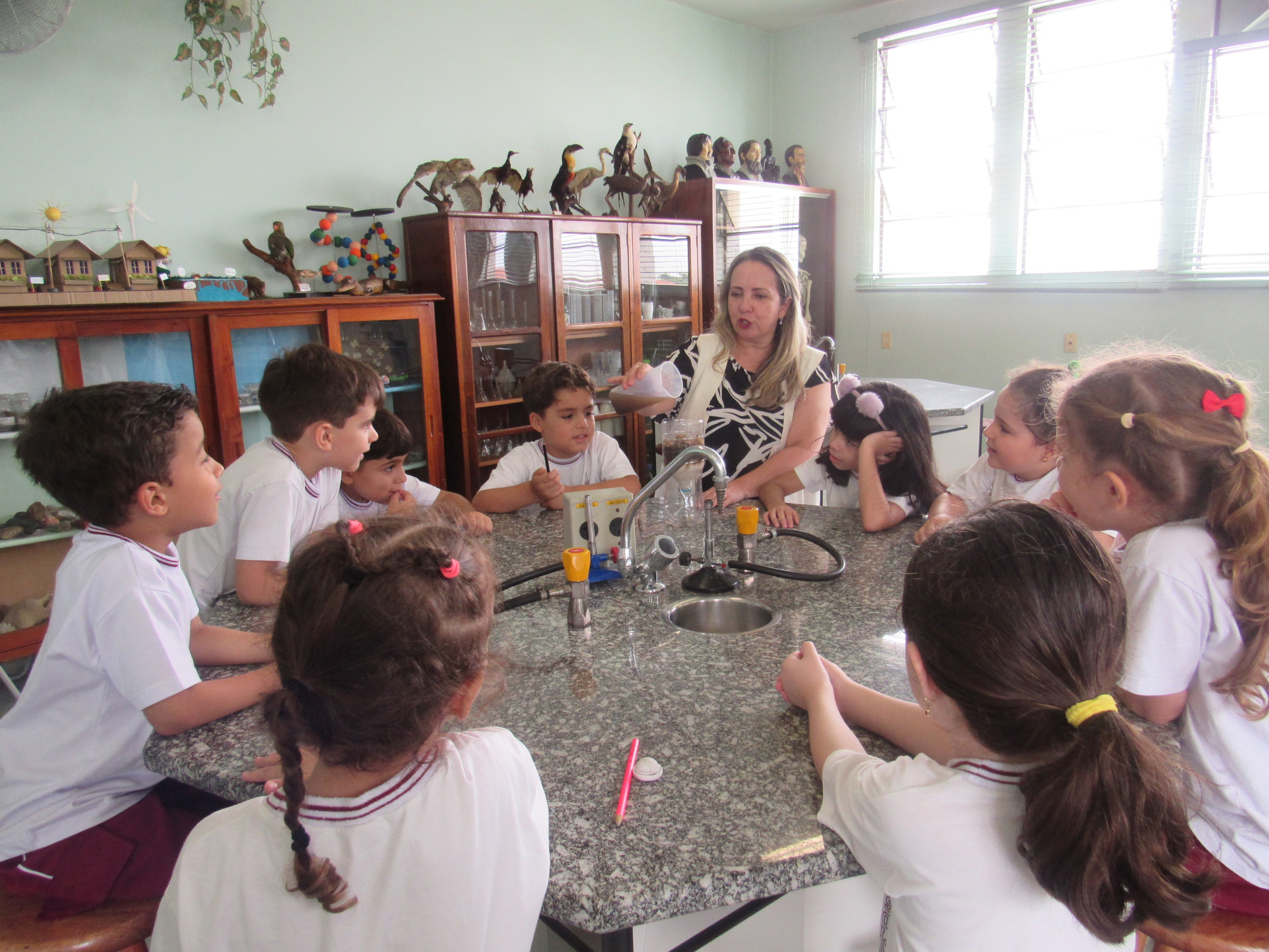 Em comemoração ao Dia da Água, os alunos do 1º ano A e B aprenderam sobre o processo de filtragem da água por meio de uma experiência prática no laboratório de ciências.
