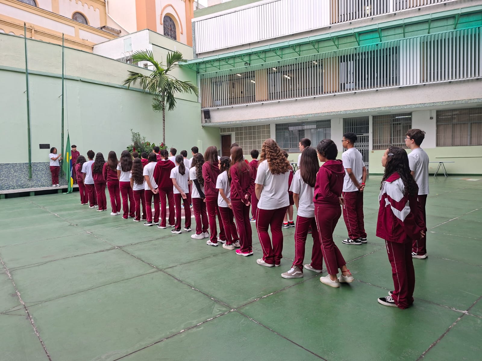 Vivenciamos mais um importante Momento Cívico com os alunos do 8º ano A do Ensino Fundamental II, um espaço de reflexão, respeito e valorização dos nossos princípios como cidadãos.