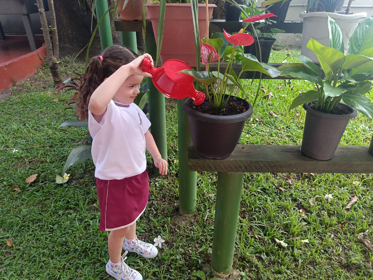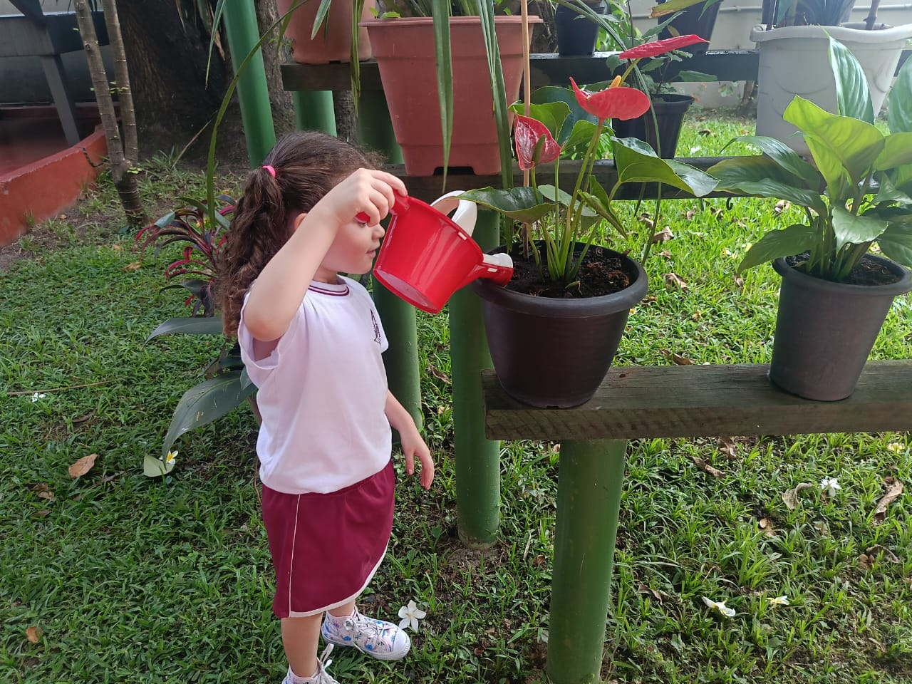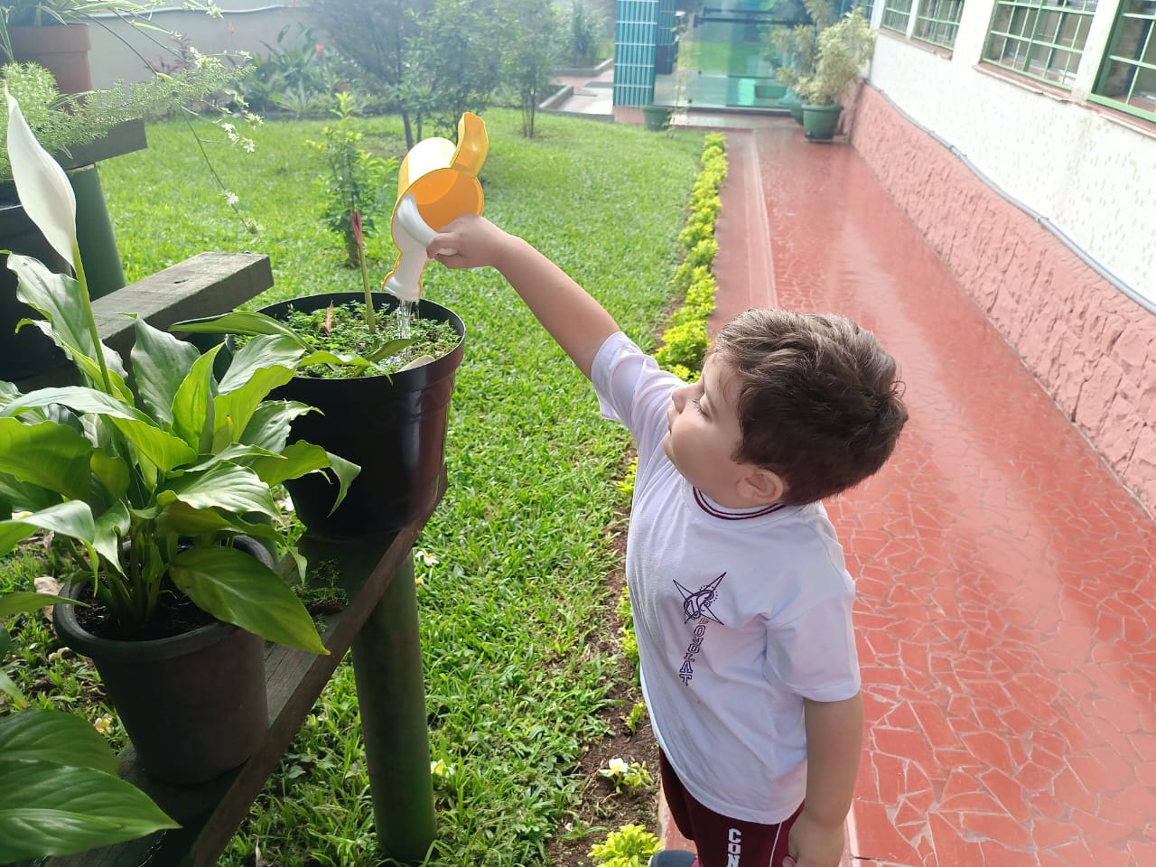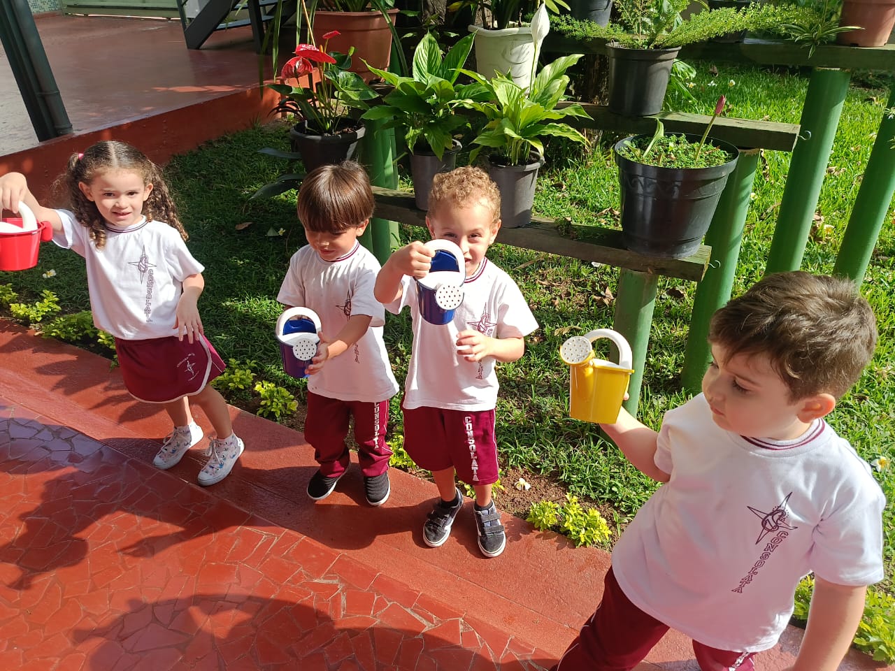 Trabalhando o livro de atividades e descobrindo tudo que há no jardim, os alunos do Infantil 1, após o momento de contemplação realizaram a rega das plantinhas do jardim. Compreenderam a importância da água para a vida botânica e cuidaram com todo amor e carinho do jardim do colégio.
