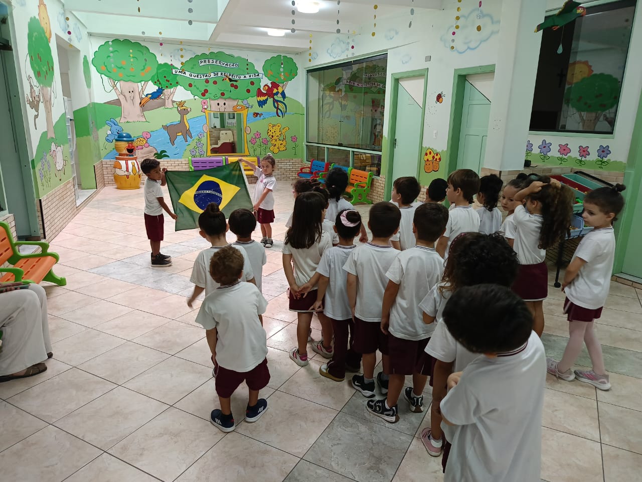 De forma simples e significativa, as crianças vivenciam valores importantes, aprendendo desde cedo sobre a importância dos símbolos nacionais, do respeito ao próximo e da convivência em comunidade. Pequenos gestos que ajudam a formar grandes cidadãos para o futuro! 💛💚