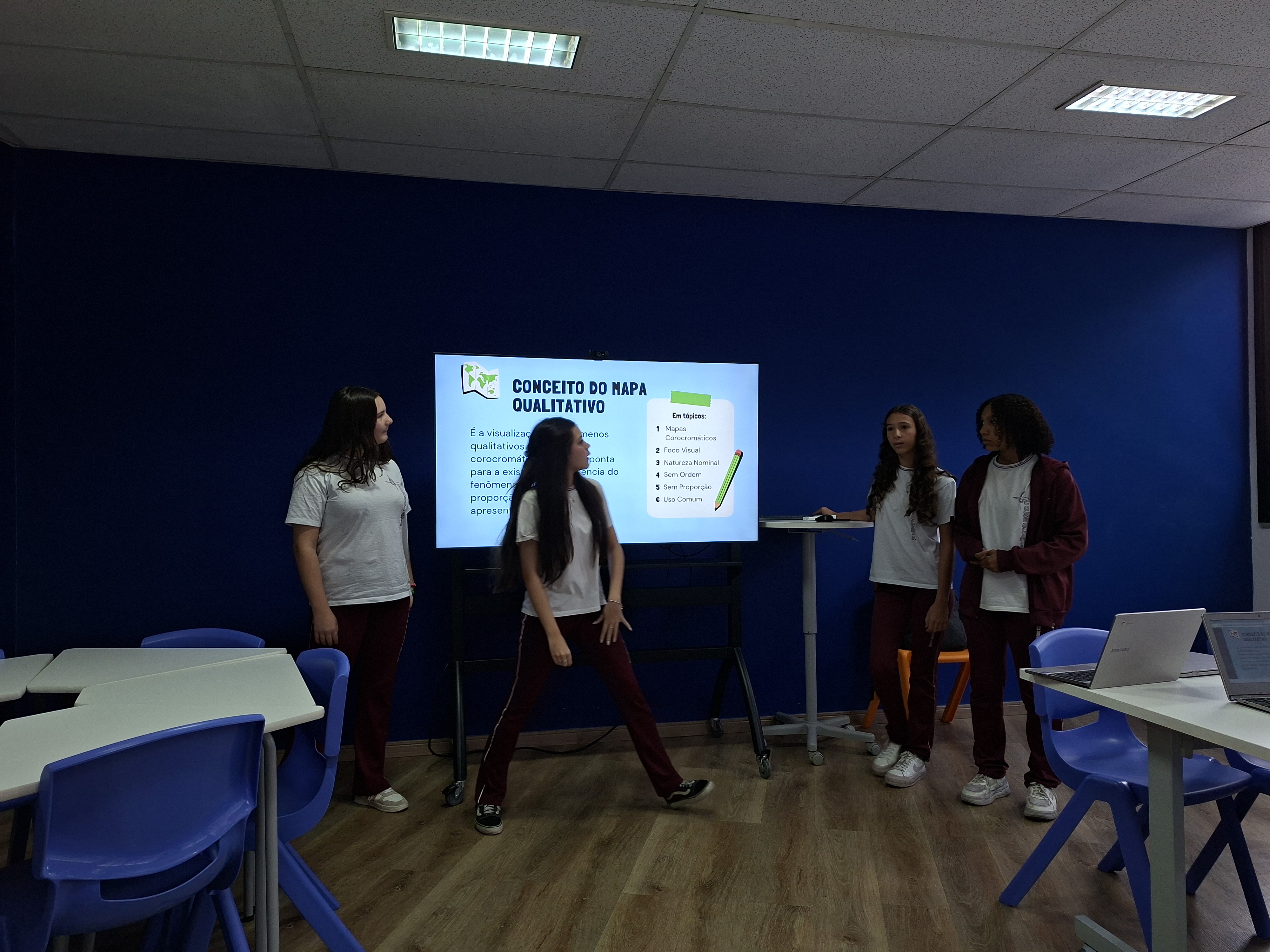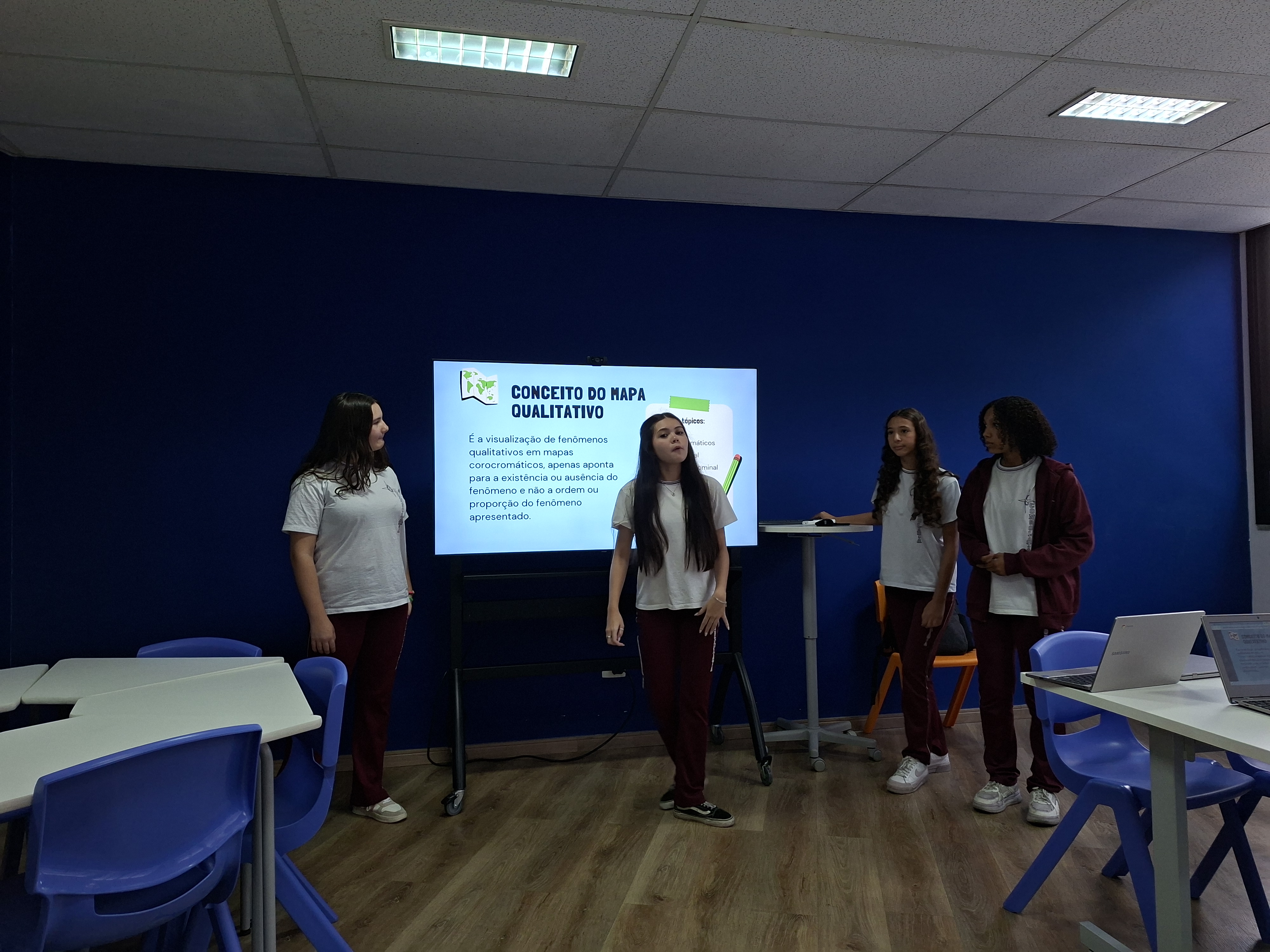 Além das apresentações, os alunos também desenvolveram mapas mentais digitais, organizando de forma visual os principais conceitos estudados e compartilhando o conhecimento com a turma.