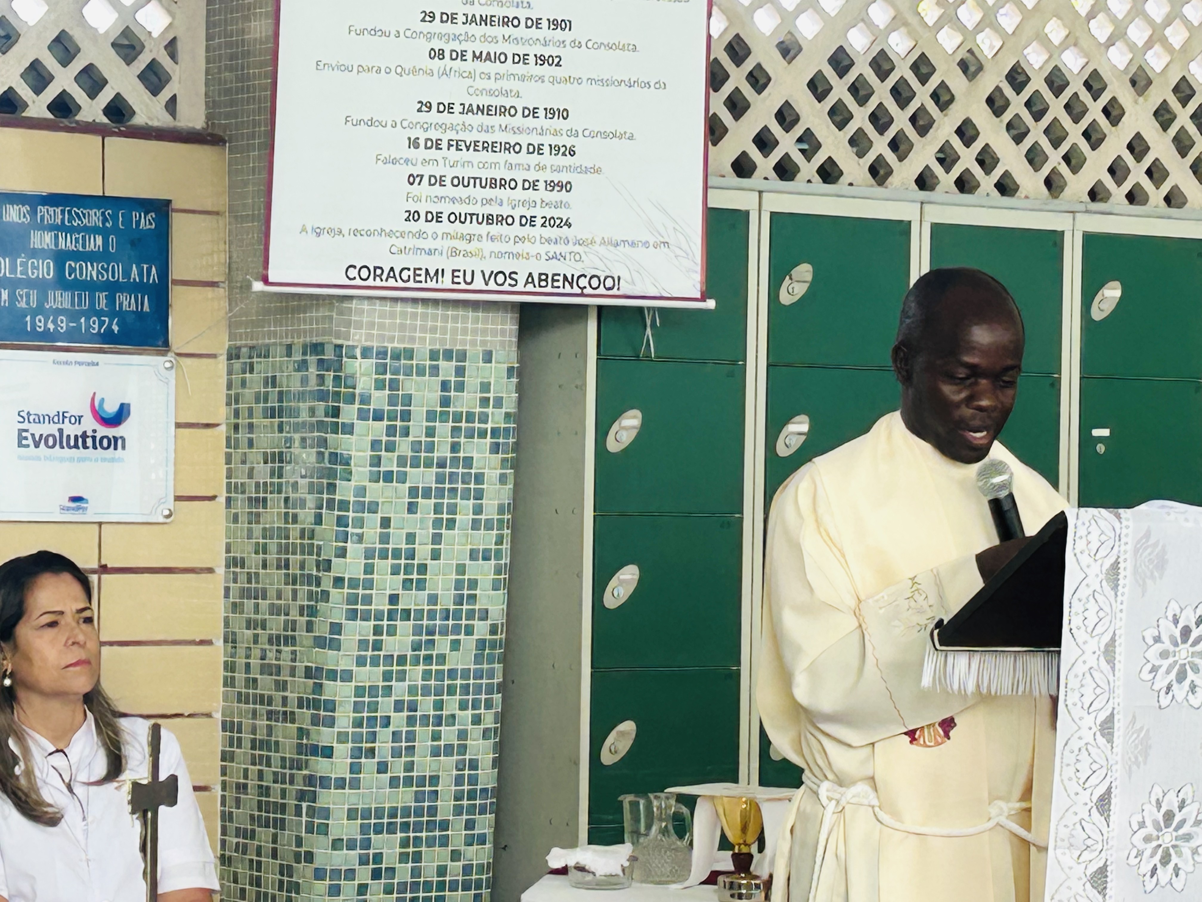Na celebração da comunidade educativa, presidida pelo Padre Fred Okumo, missionário da Consolata, vivemos juntos a partilha de dons e a entrega de nossas vidas ao Senhor — reconhecendo que tudo o que somos e realizamos encontra sentido em Cristo.