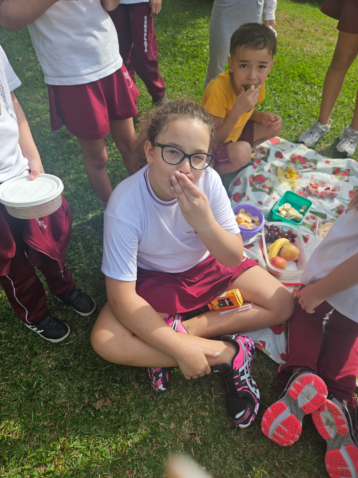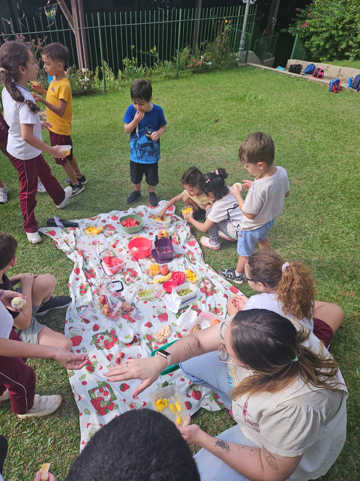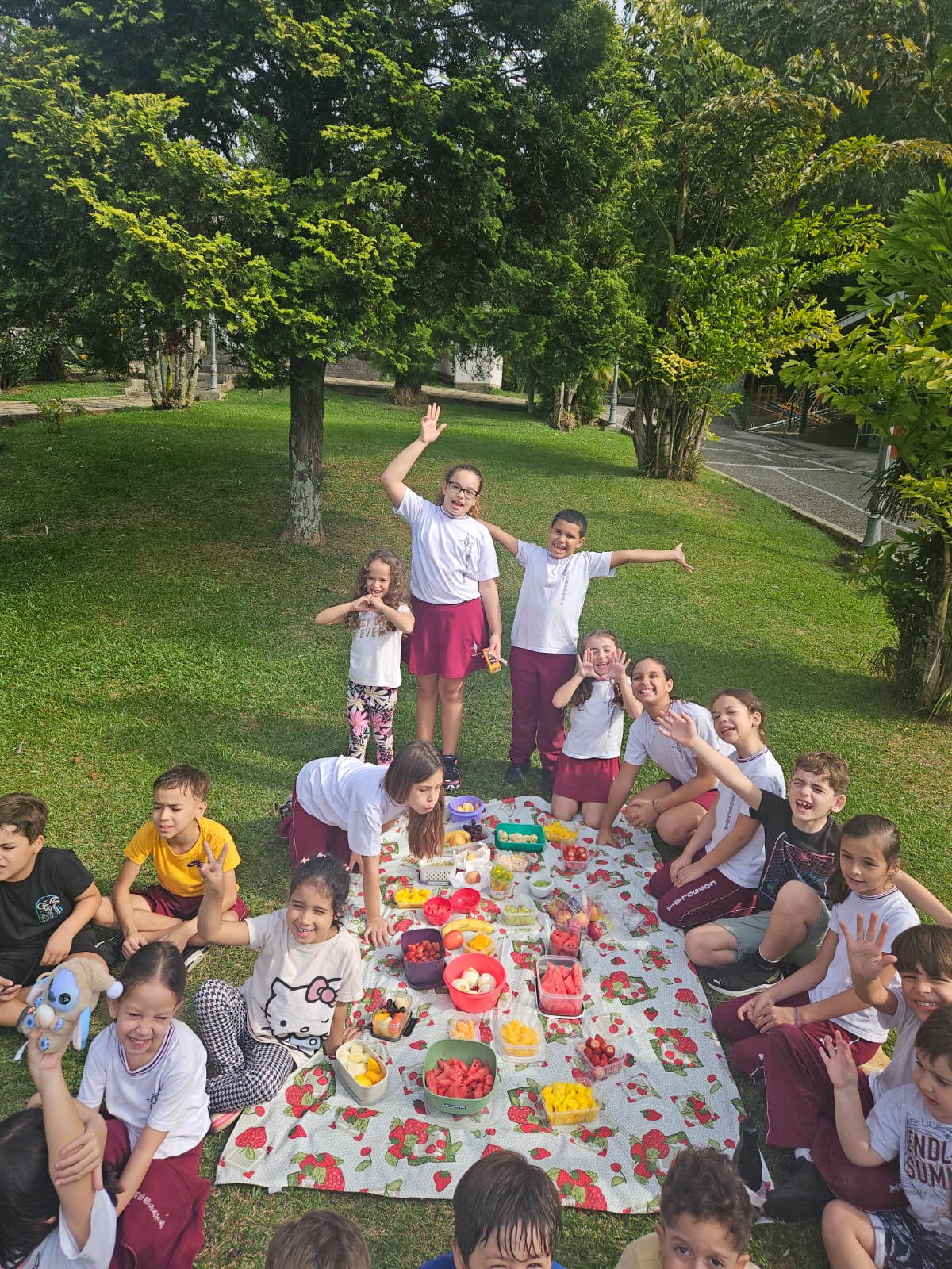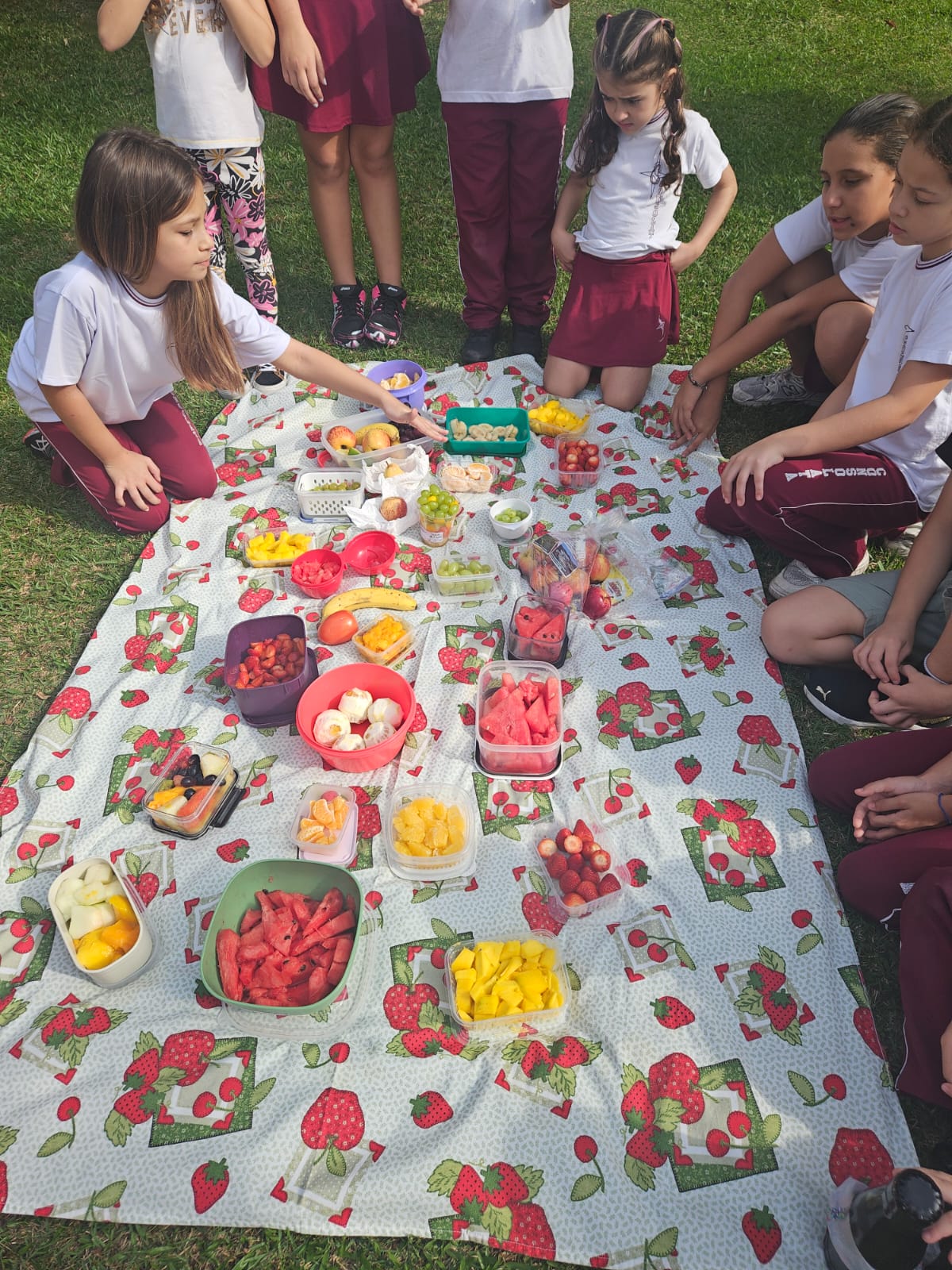 Os alunos do Período Adicional vivenciaram um momento especial com a realização de um piquenique de outono, dedicado à apreciação de frutas.