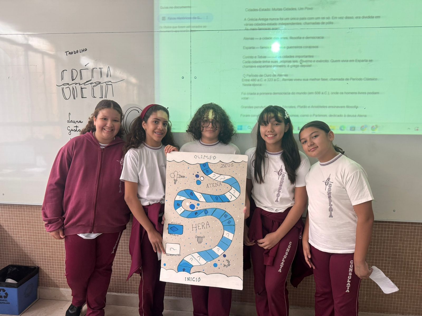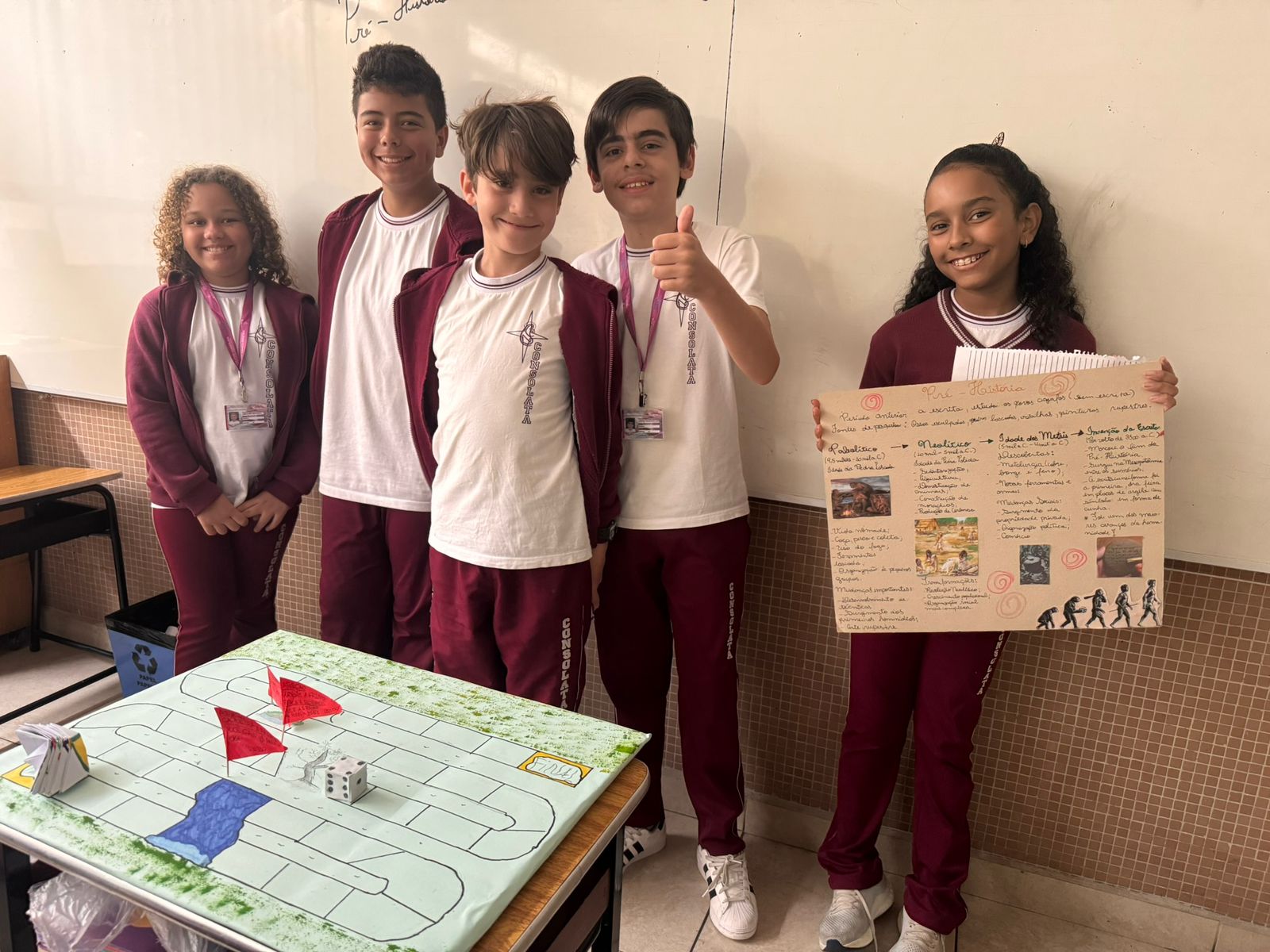 Os alunos do 6º ano idealizaram e desenvolveram um jogo histórico completo, criando regras, estrutura e design, a partir de grandes civilizações como Mesopotâmia, Egito Antigo, Grécia, Roma e a história dos hebreus.design, a partir de grandes civilizações como Mesopotâmia, Egito Antigo, Grécia, Roma e a história dos hebreus.